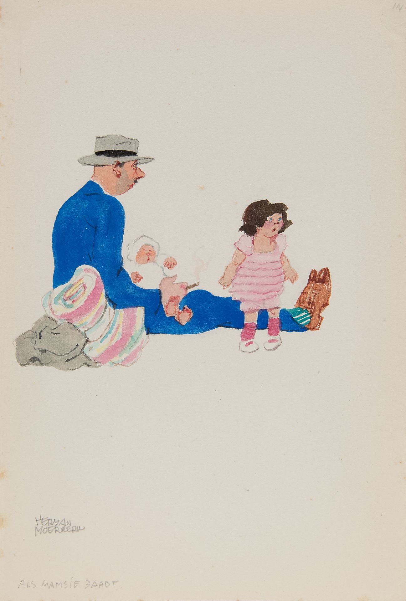Herman Moerkerk kunstwerk • aquarel • tekening • te koop Als mamsie baadt
