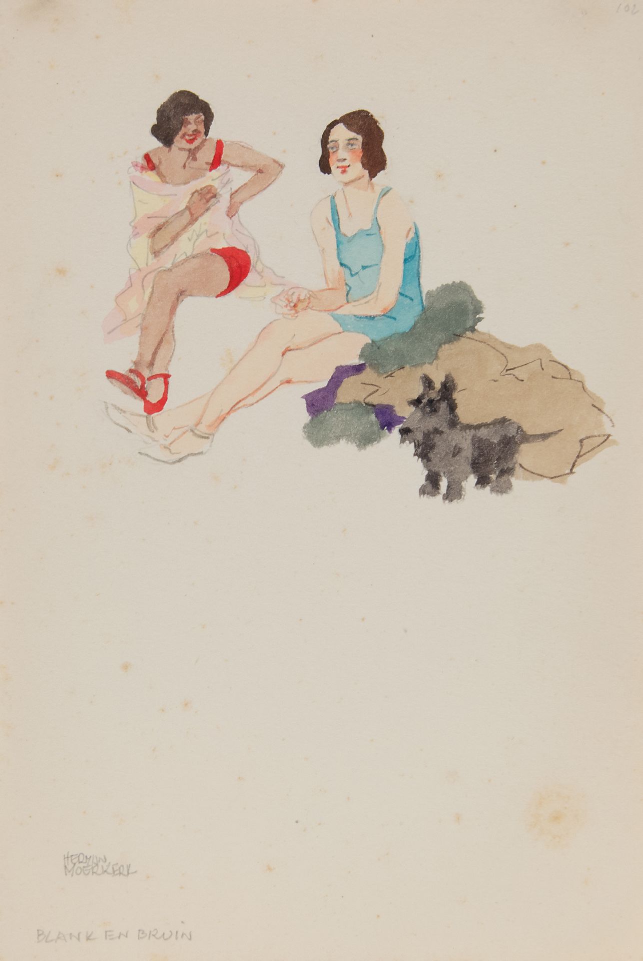 Herman Moerkerk kunstwerk • aquarel • tekening • te koop Blank en bruin