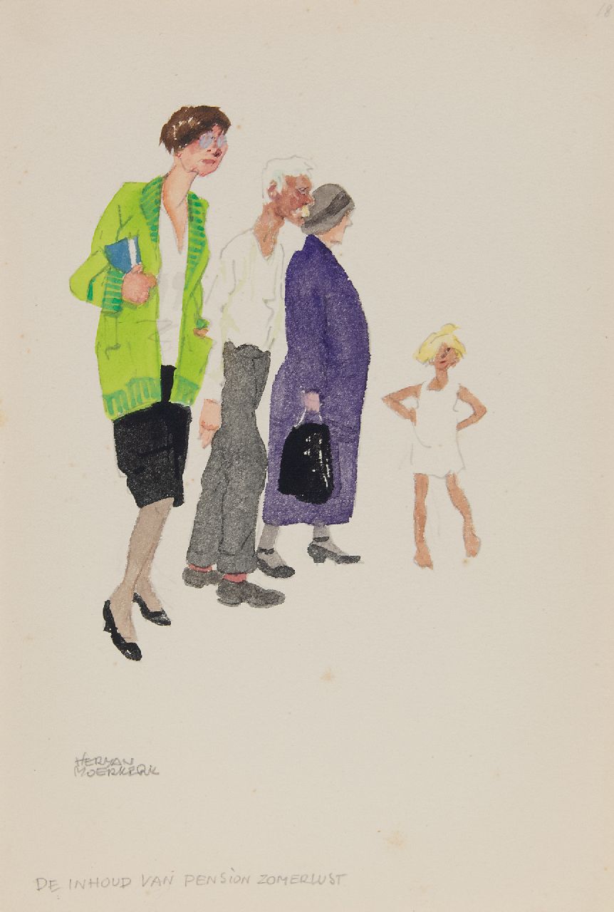 Herman Moerkerk kunstwerk • aquarel • tekening • te koop De inhoud van pension Zomerlust