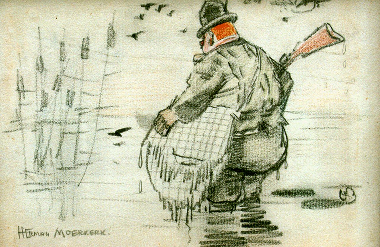 Herman Moerkerk kunstwerk • aquarel • tekening • voorheen te koop De jager in het water