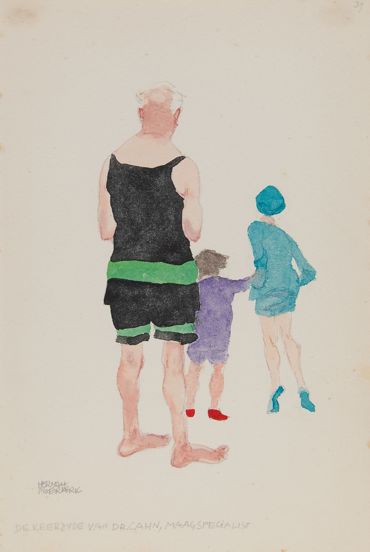 Moerkerk H.A.J.M.  | Hermanus Antonius Josephus Maria 'Herman' Moerkerk | Aquarellen en tekeningen te koop aangeboden | De keerzijde van Dr. Cahn, maagspecialist, potlood en aquarel op papier 25,5 x 17,1 cm, gesigneerd linksonder