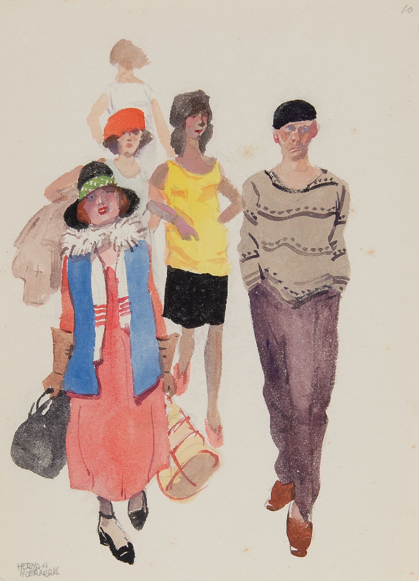 Herman Moerkerk | Samen op stap, inkt en aquarel op papier, 19,5 x 13,9 cm, gesigneerd r.o.
