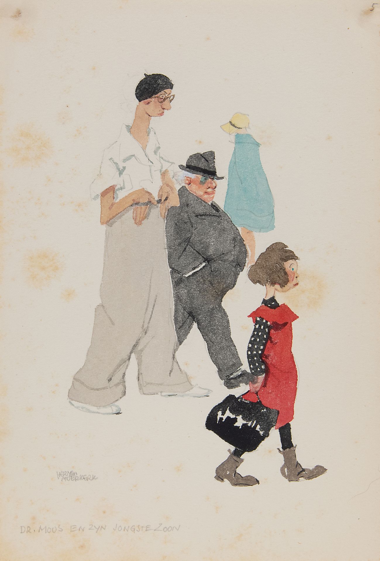 Herman Moerkerk kunstwerk • aquarel • tekening • te koop Dr. Moos en zijn jongste zoon