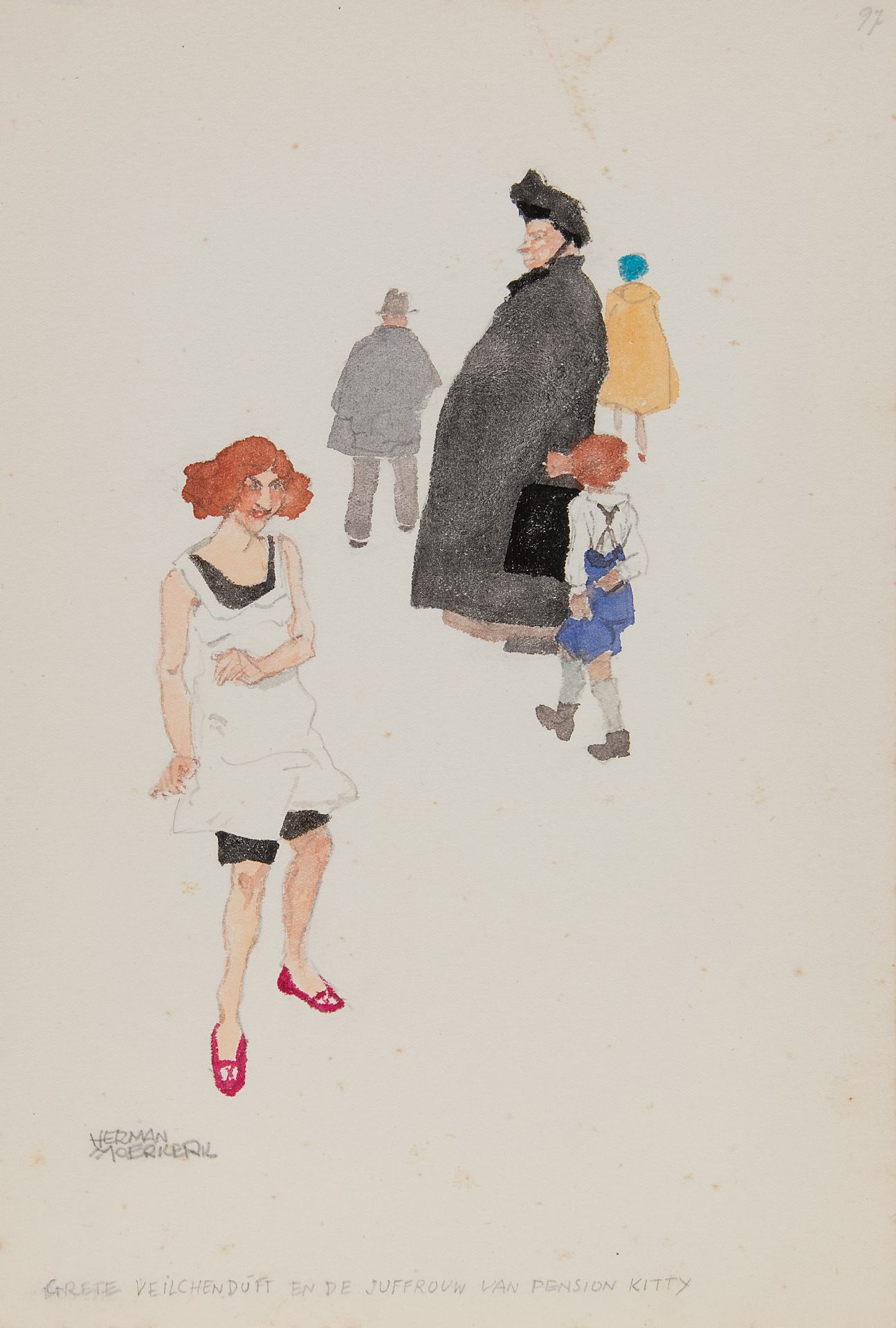 Herman Moerkerk kunstwerk • aquarel • tekening • te koop Grete Veilchenduft en de juffrouw van Pension Kitty