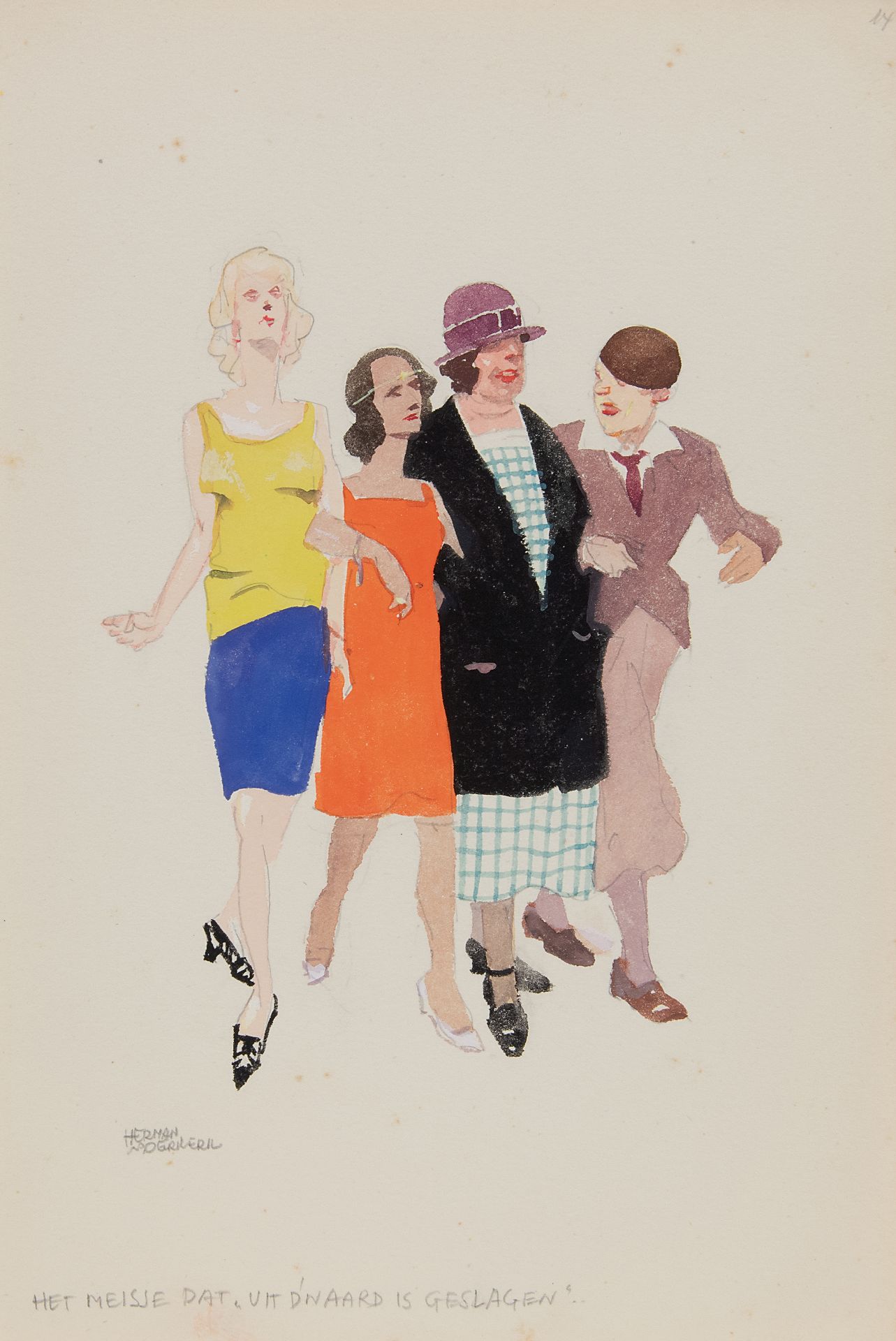 Herman Moerkerk kunstwerk • aquarel • tekening • te koop 'Het meisje dat, 'uit d'n aard is geslagen'