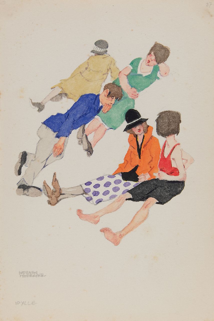 Herman Moerkerk kunstwerk • aquarel • tekening • voorheen te koop Idylle
