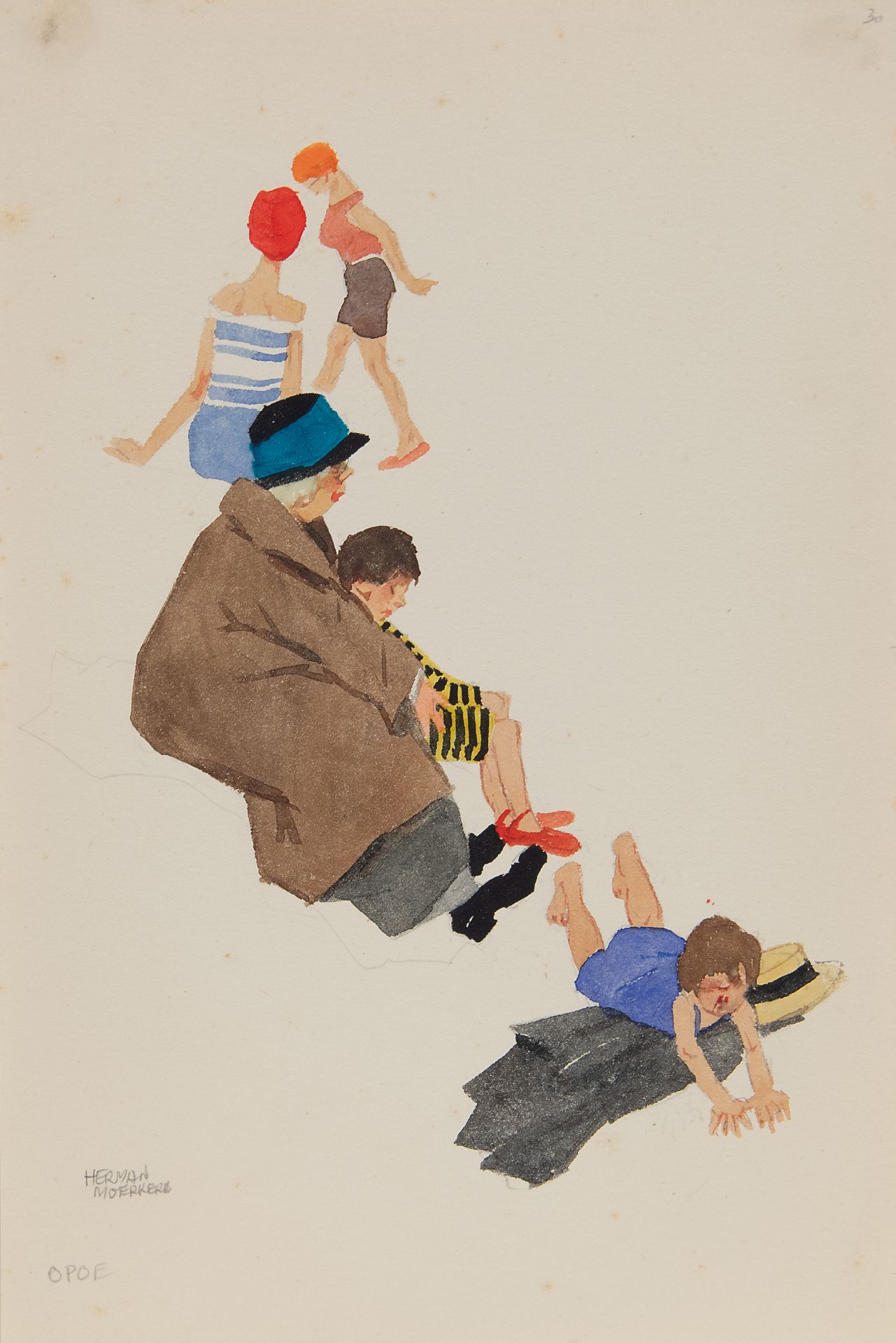 Herman Moerkerk kunstwerk • aquarel • tekening • te koop Opoe