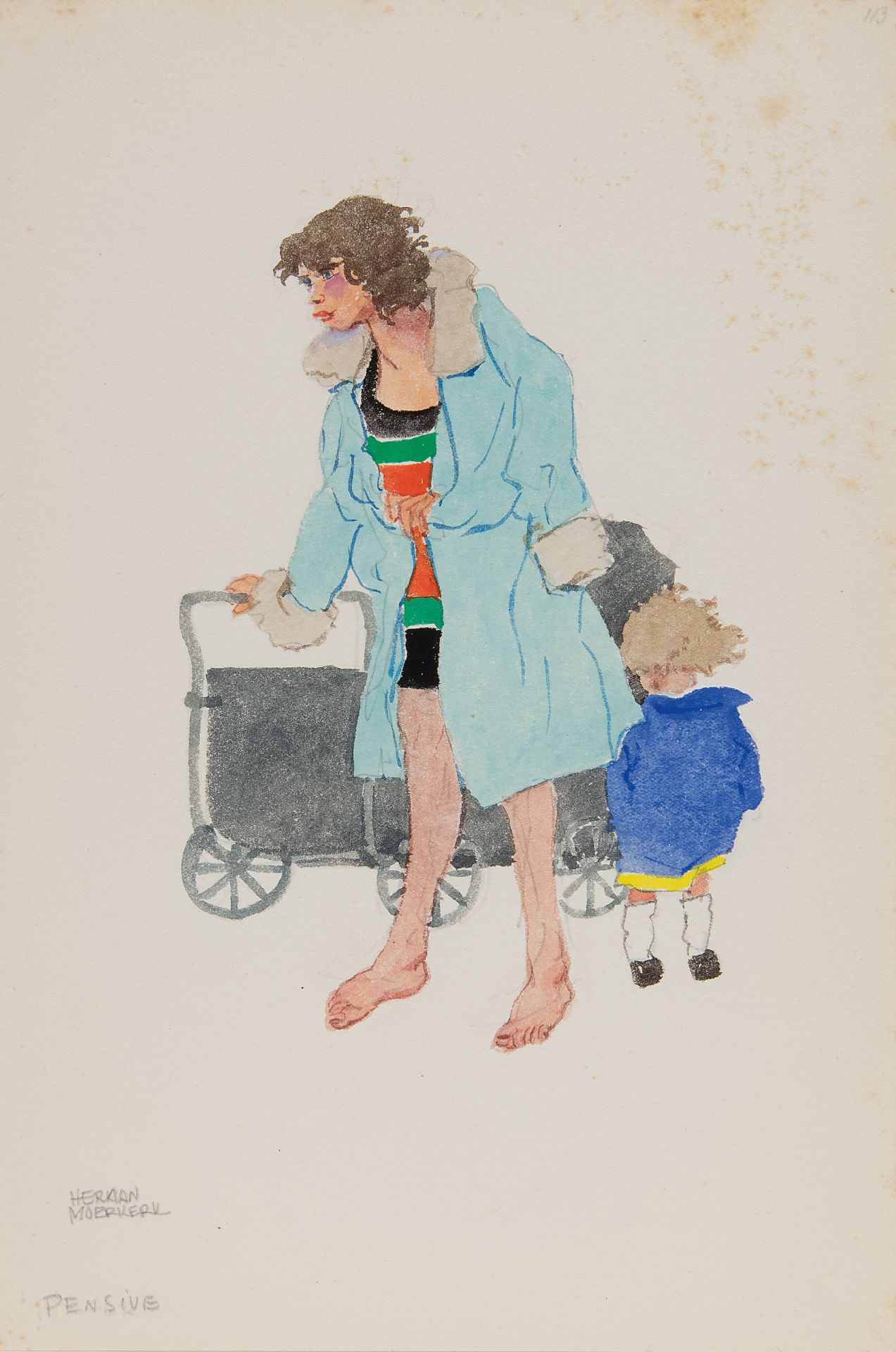 Herman Moerkerk kunstwerk • aquarel • tekening • te koop Pensive