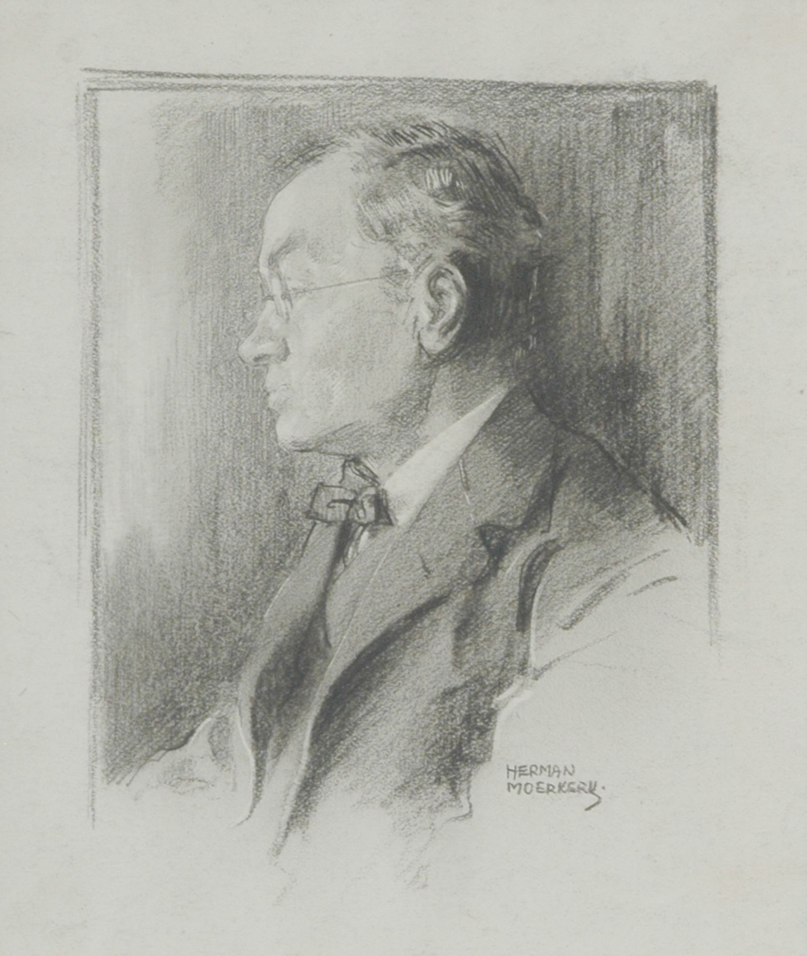 Herman Moerkerk kunstwerk • aquarel • tekening • voorheen te koop Portret van de componist Alphons Diepenbrock