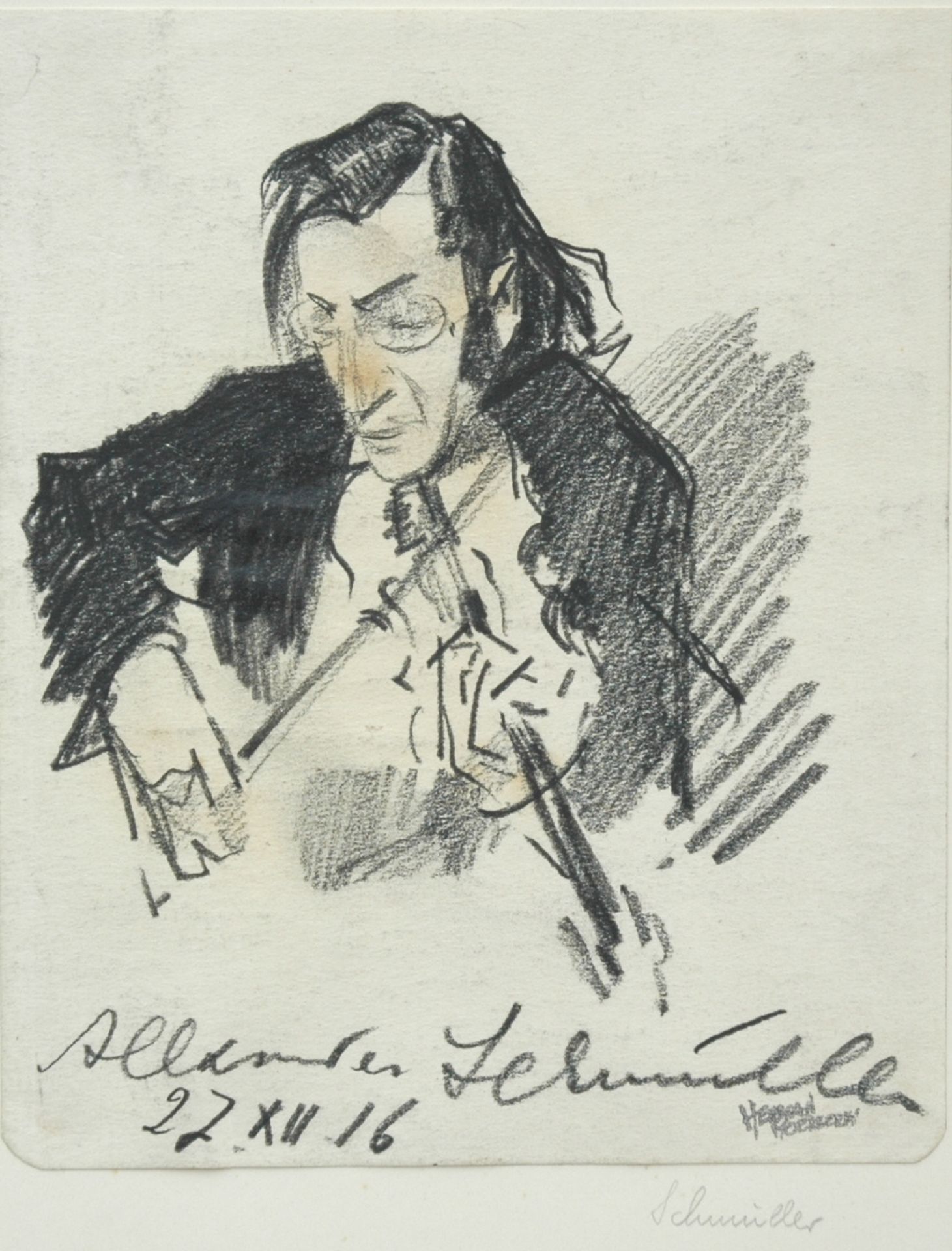 Herman Moerkerk kunstwerk • aquarel • tekening • voorheen te koop Portret van de violist Alexander Schmuller