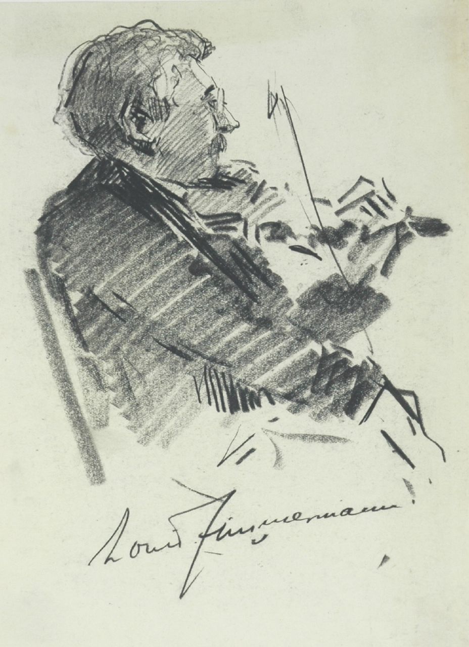 Herman Moerkerk kunstwerk • aquarel • tekening • voorheen te koop Portret van de violist en componist Louis Zimmermann