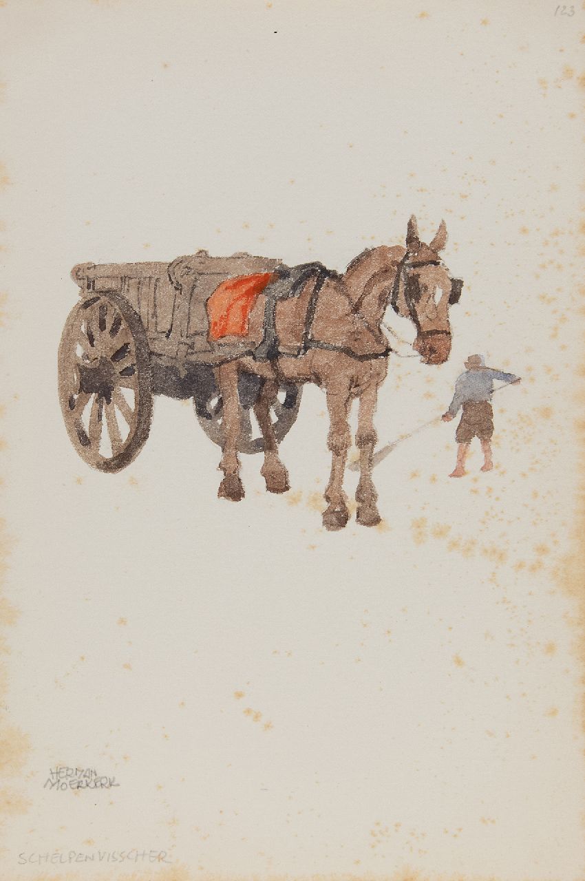 Herman Moerkerk kunstwerk • aquarel • tekening • te koop Schelpenvisscher