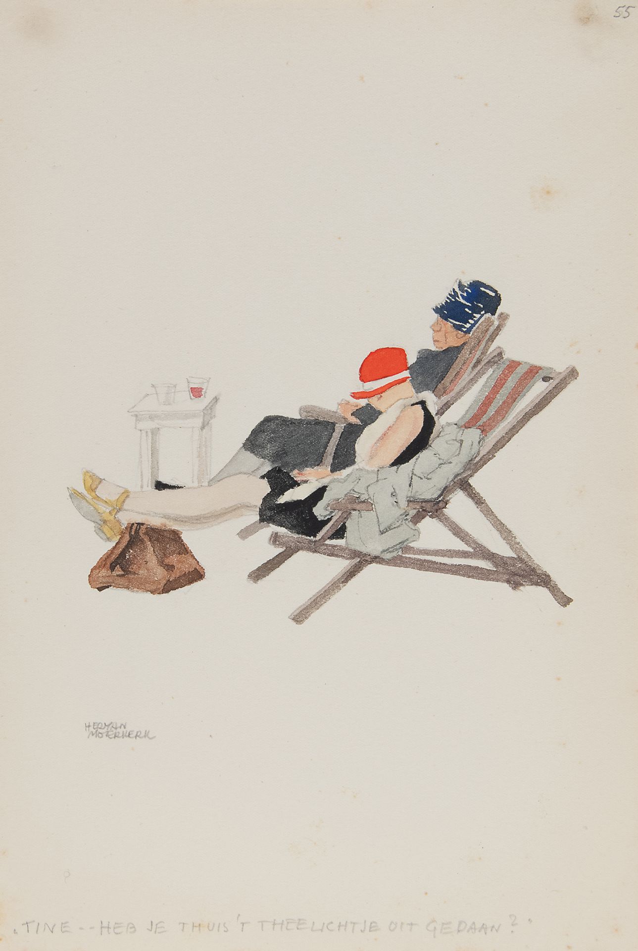 Herman Moerkerk kunstwerk • aquarel • tekening • te koop 'Tine.. Heb je thuis 't theelichtje uit gedaan?'
