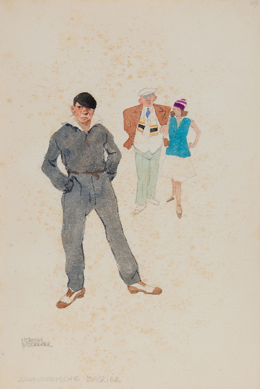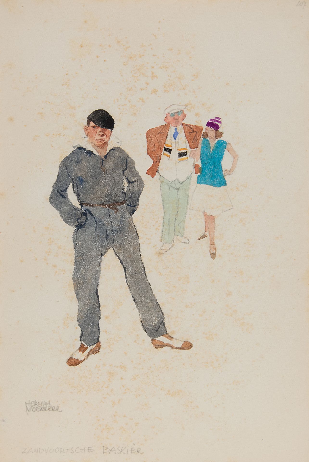 Herman Moerkerk kunstwerk • aquarel • tekening • te koop Zandvoortse baskiër
