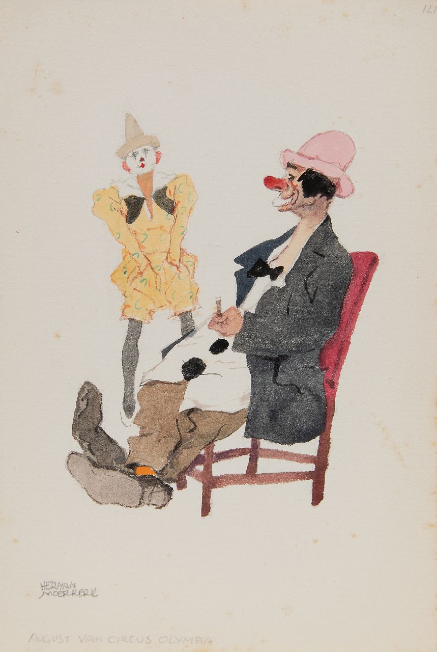 Moerkerk H.A.J.M.  | Hermanus Antonius Josephus Maria 'Herman' Moerkerk | Aquarellen en tekeningen te koop aangeboden | August van Circus Olympia, potlood en aquarel op papier 25,6 x 17,2 cm, gesigneerd linksonder