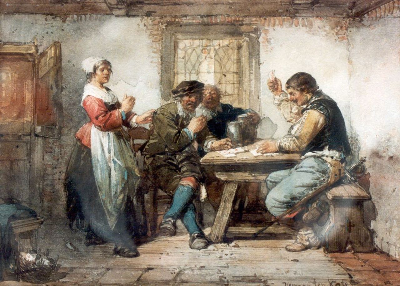 Herman ten Kate kunstwerk • aquarel • tekening • voorheen te koop Kaartspelers in de herberg