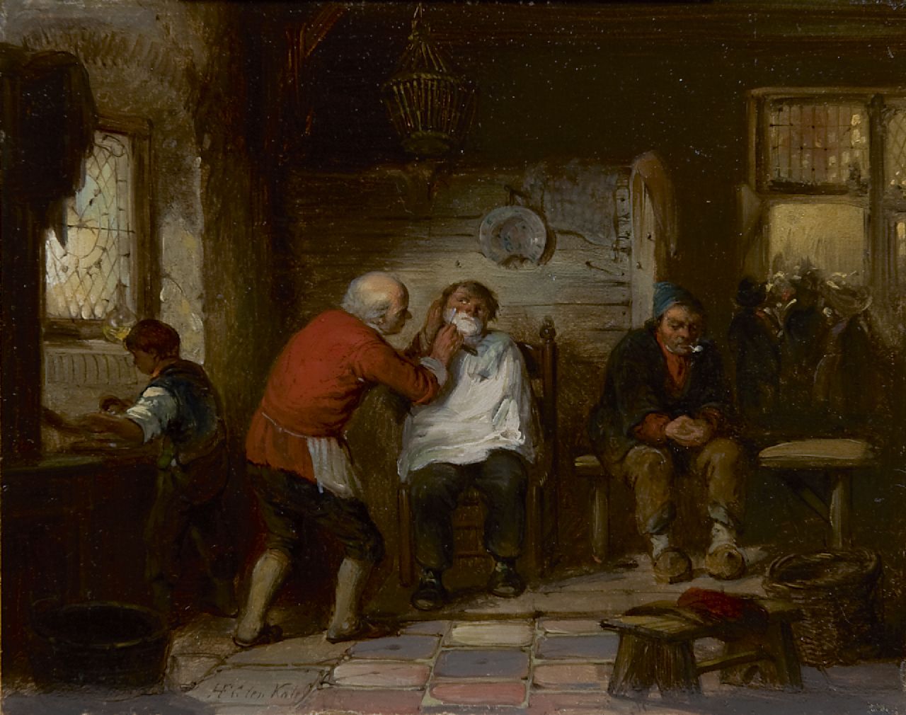 Herman ten Kate kunstwerk • schilderij • voorheen te koop Bij de barbier