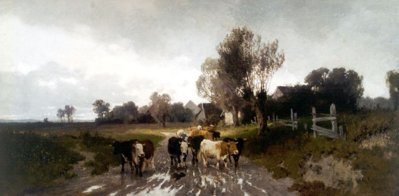 Hermann Baisch kunstwerk • schilderij • voorheen te koop Koeien op een polderweg