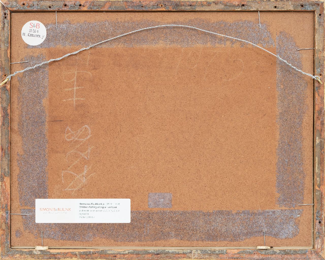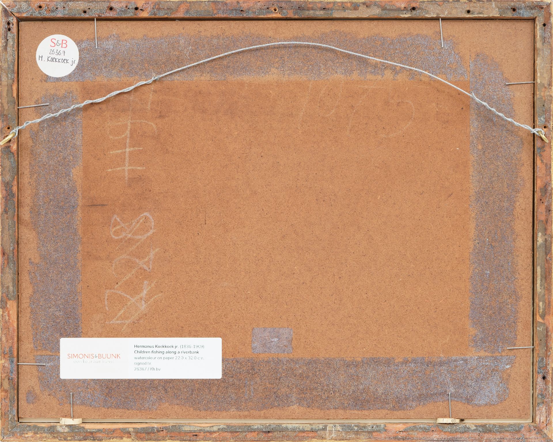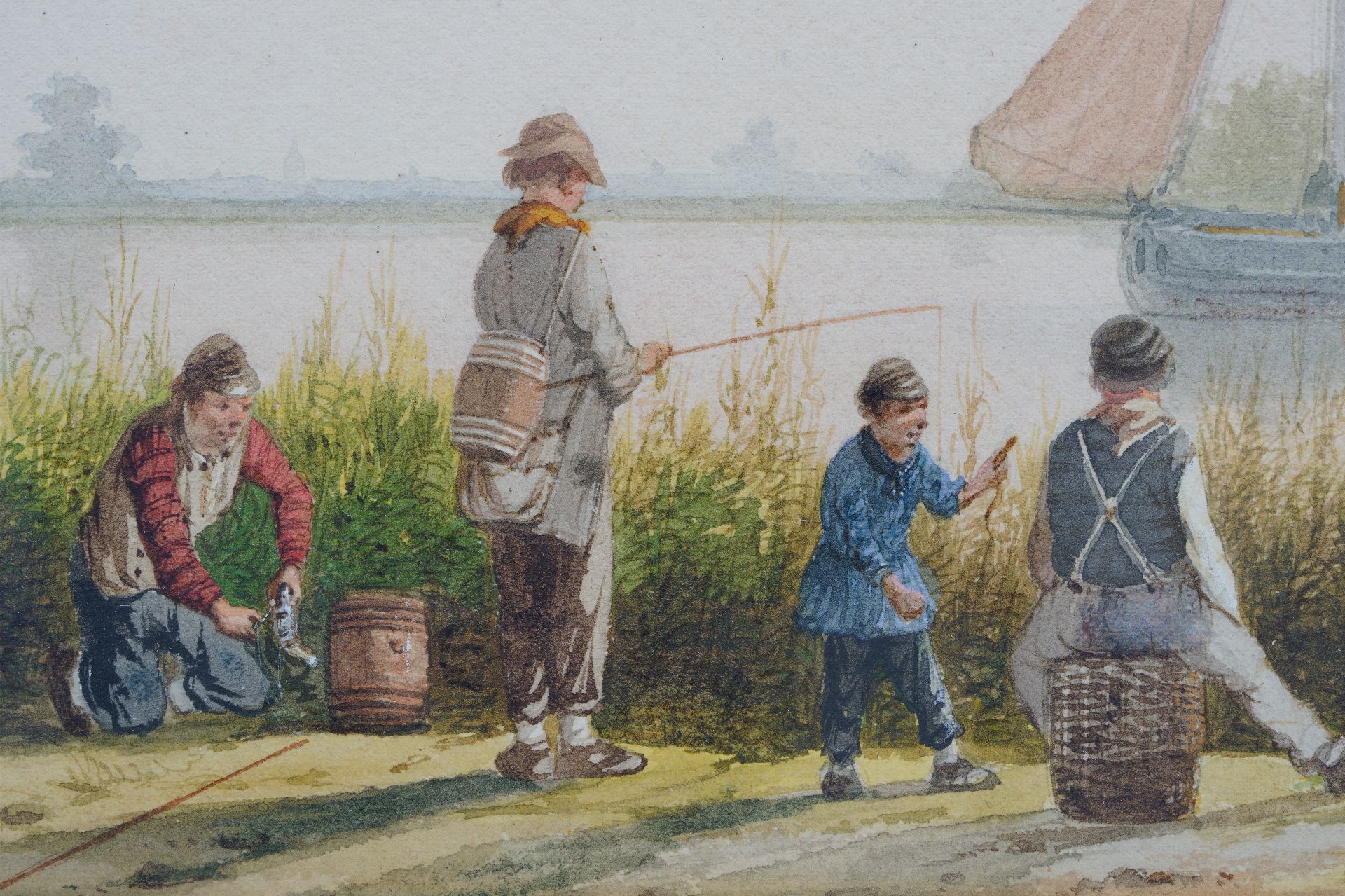 Hermanus Koekkoek jr. kunstwerk • aquarel • tekening • voorheen te koop Vissende kinderen langs een rivieroever