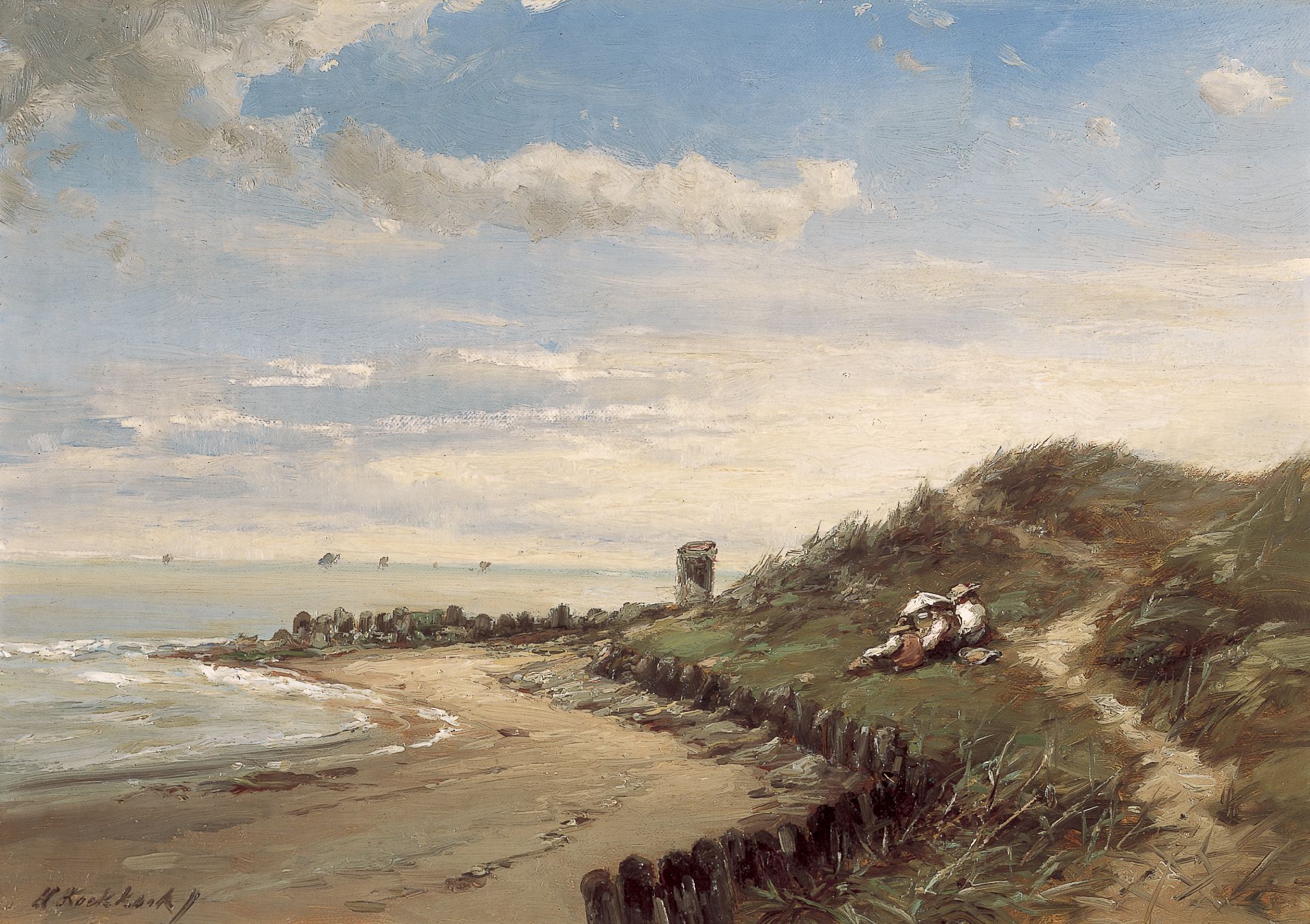 Hermanus Koekkoek jr. kunstwerk • schilderij • voorheen te koop Picknick in de duinen