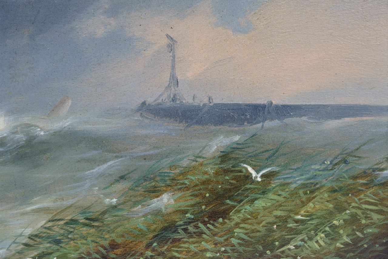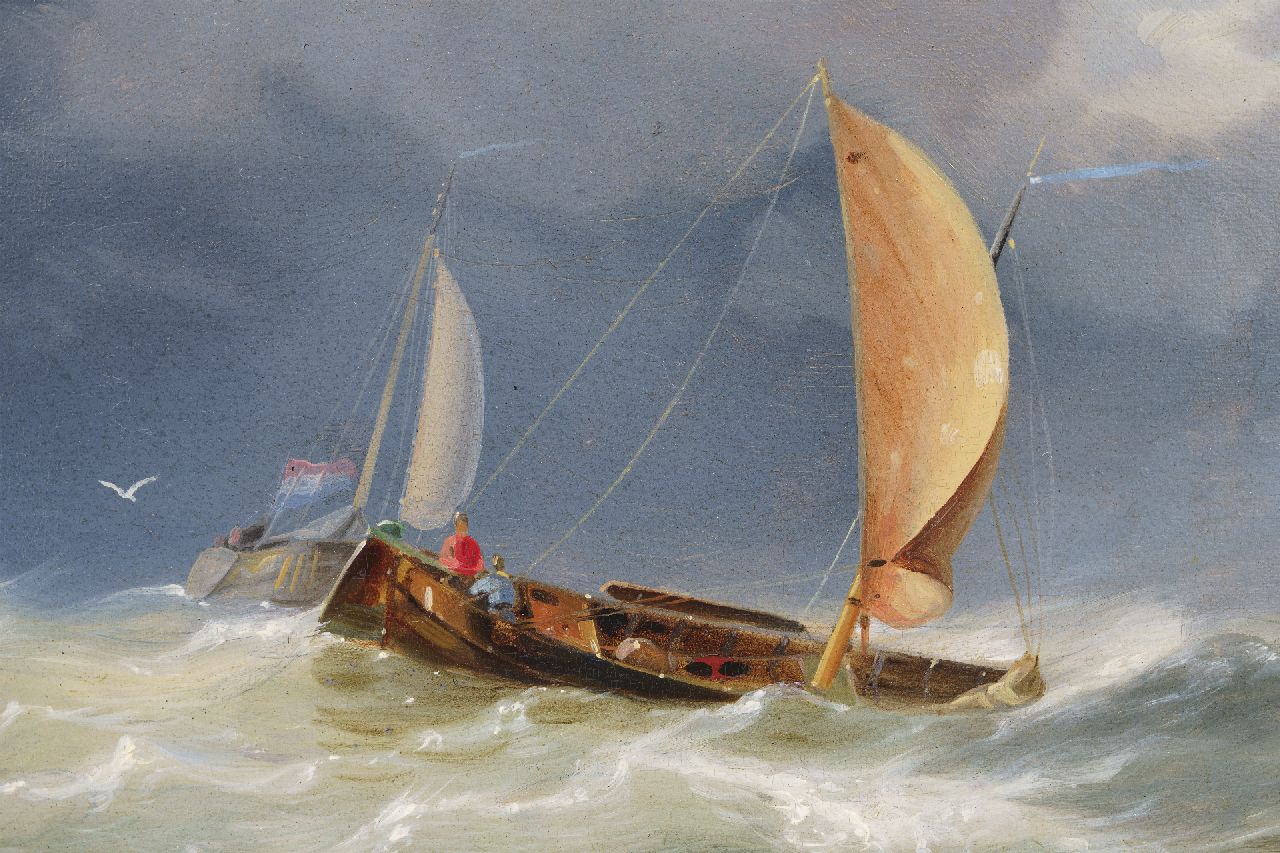 Hermanus Koekkoek jr. kunstwerk • schilderij • voorheen te koop Schepen in een storm bij haveningang