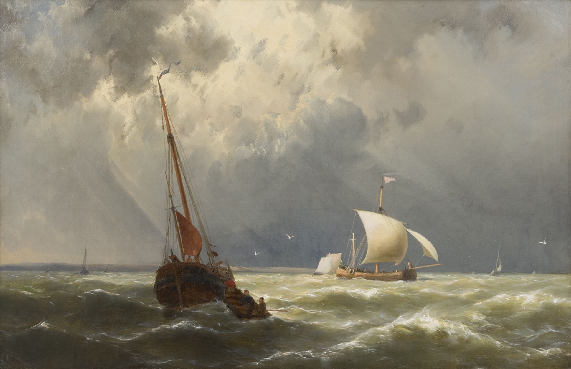 Hermanus Koekkoek jr. kunstwerk • schilderij • voorheen te koop Zeilschepen op woelige zee