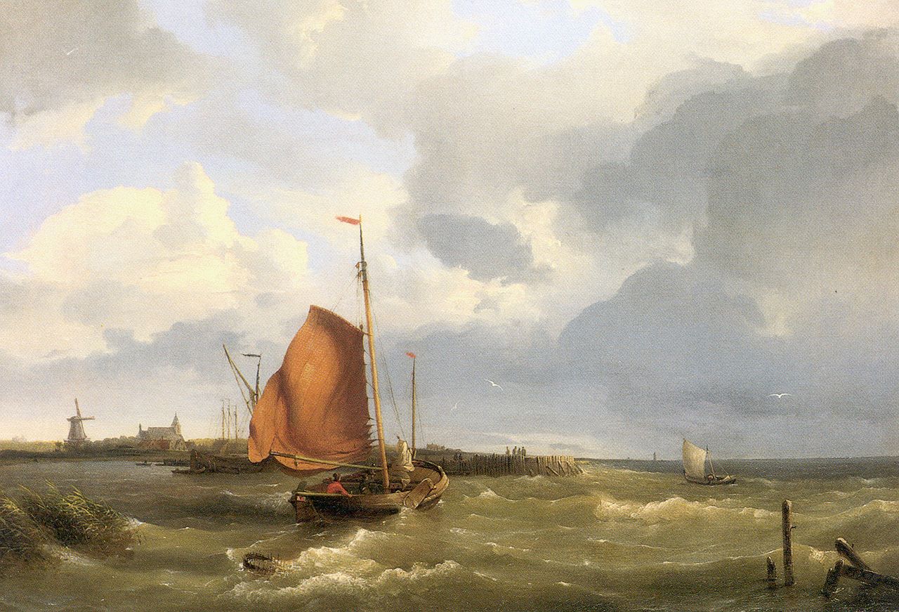 Hermanus Koekkoek kunstwerk • schilderij • voorheen te koop Botter bij een Zuiderzeehaven