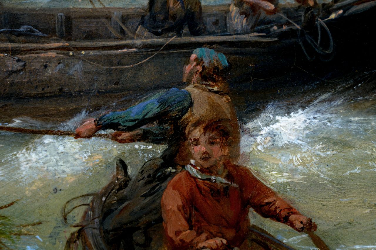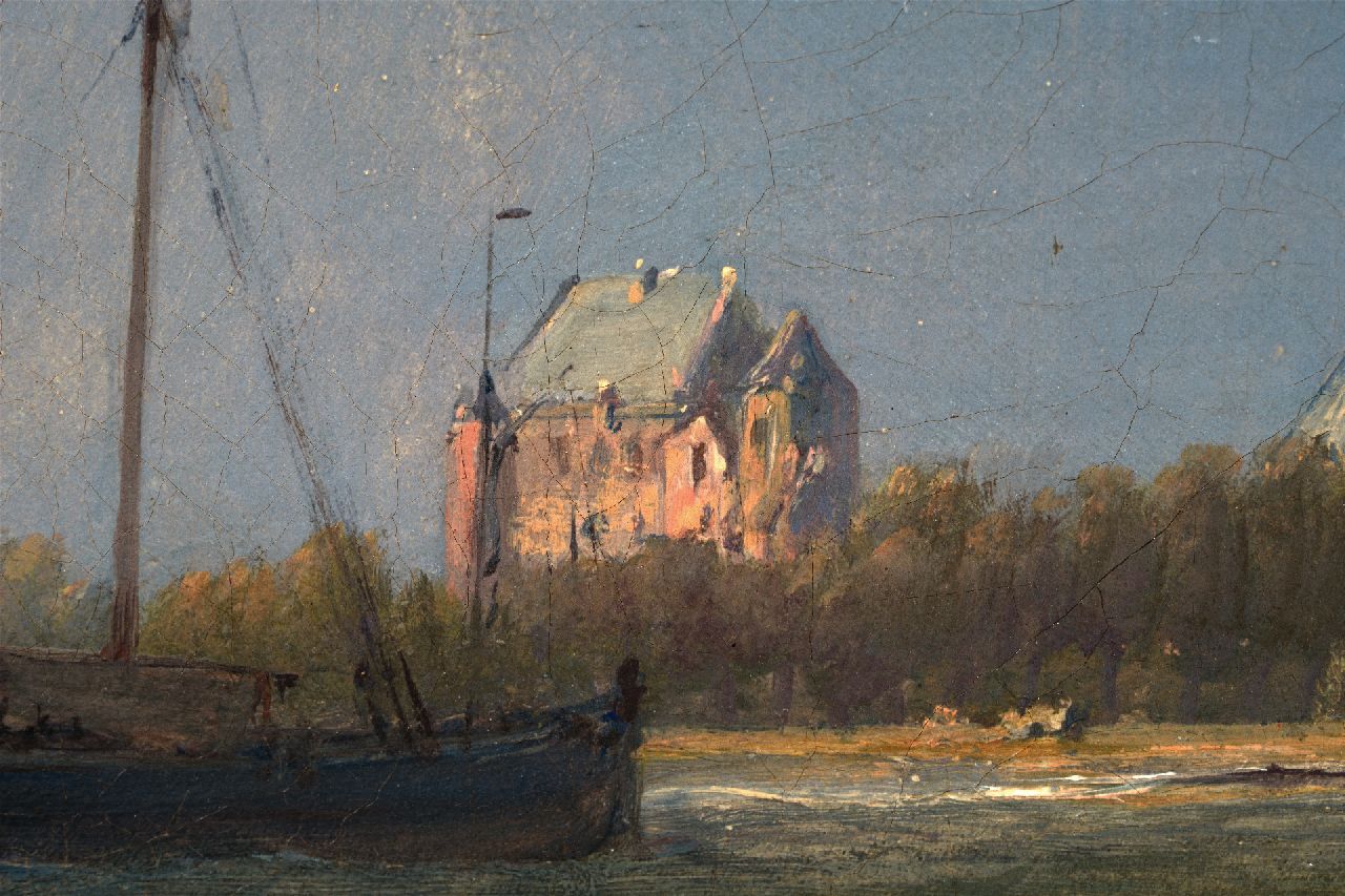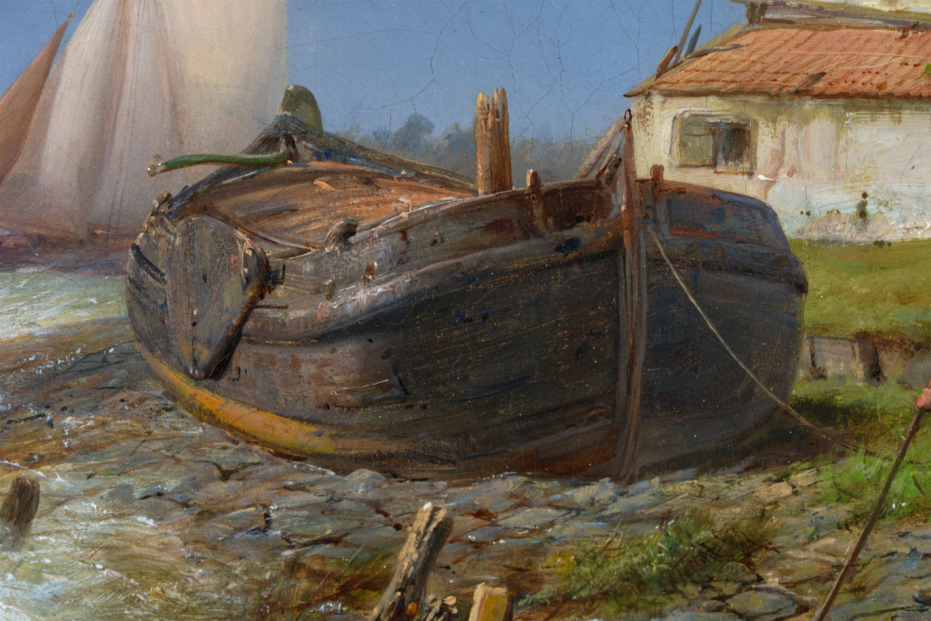 Hermanus Koekkoek kunstwerk • schilderij • voorheen te koop Een stevige bries aan Hollandse kust met dorp in het verschiet