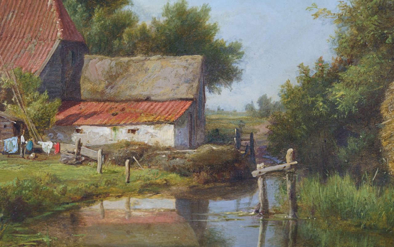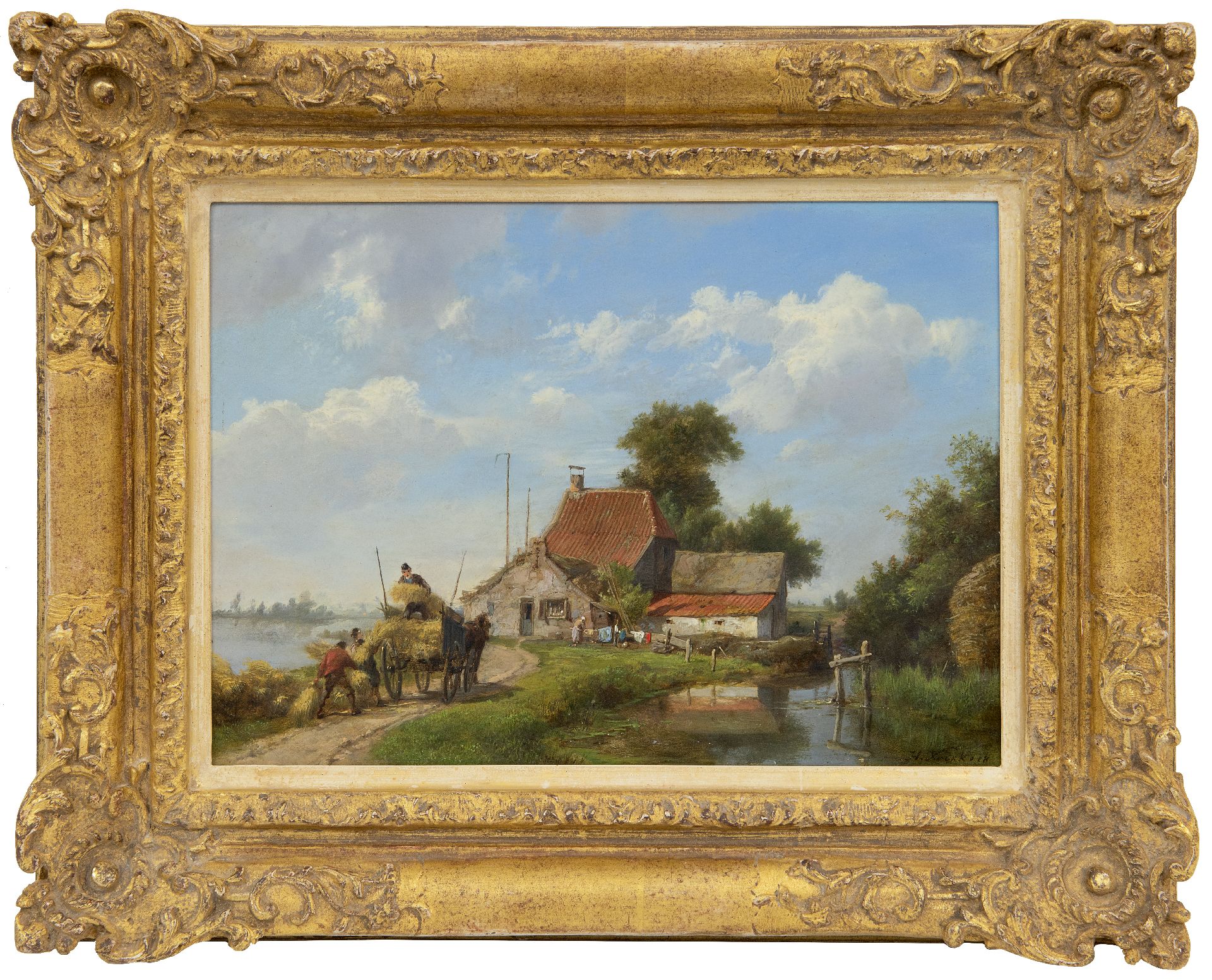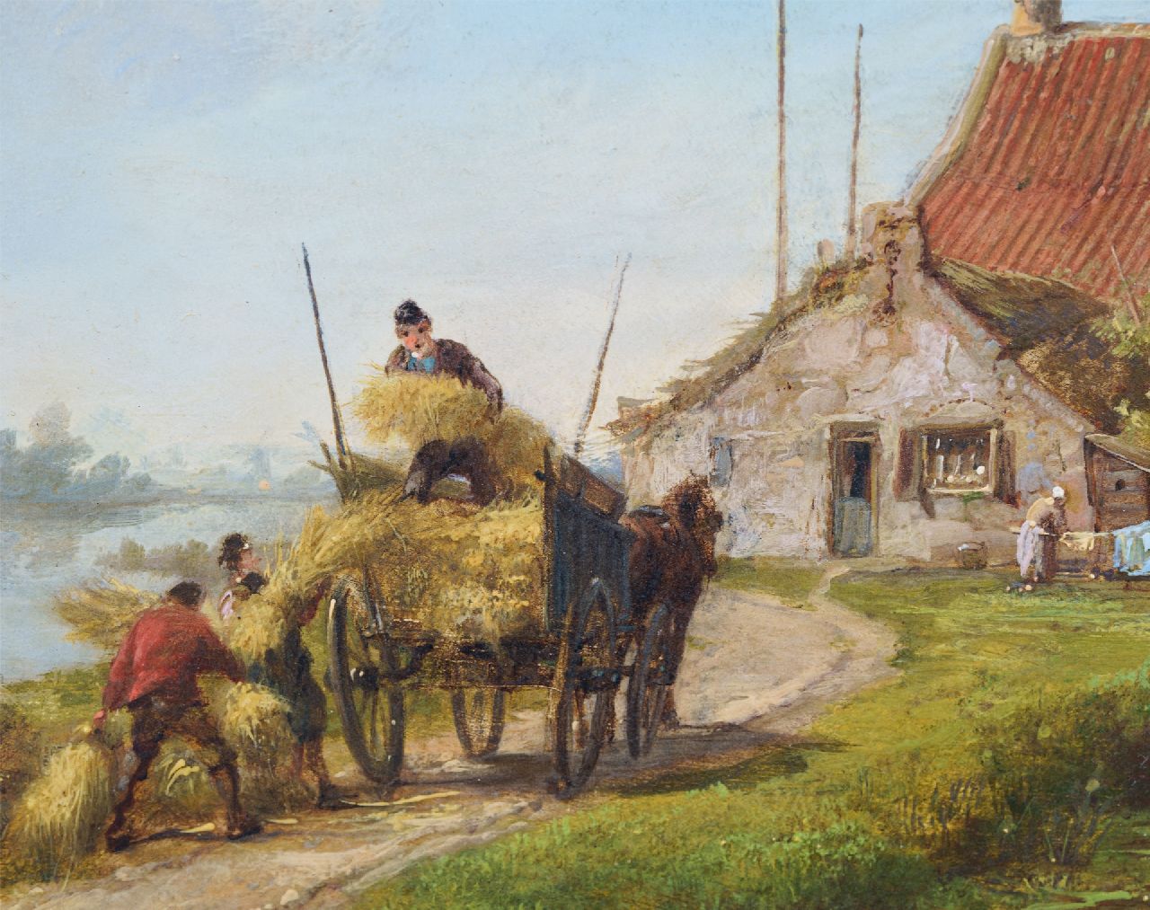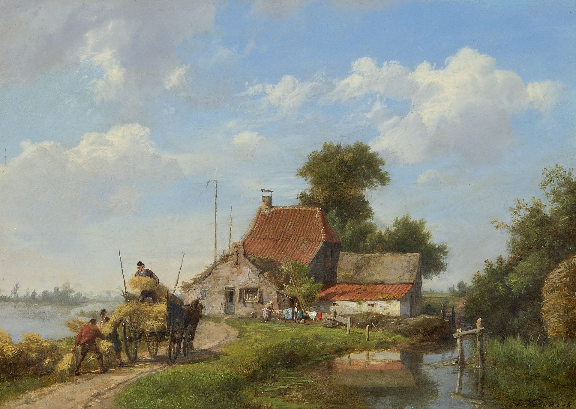 Hermanus Koekkoek kunstwerk • schilderij • voorheen te koop Het opladen van de hooikar bij een boerderij