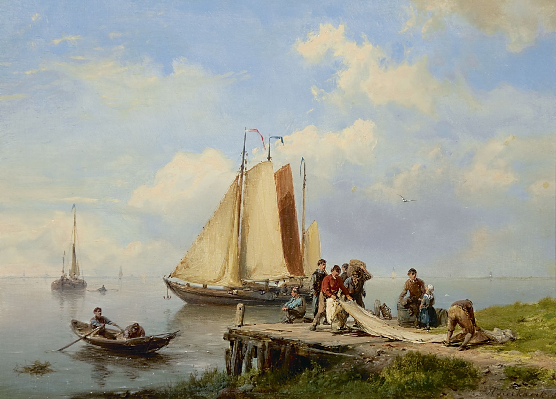 Hermanus Koekkoek kunstwerk • schilderij • voorheen te koop Het opvouwen van de zeilen