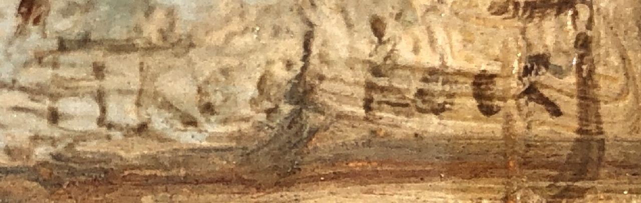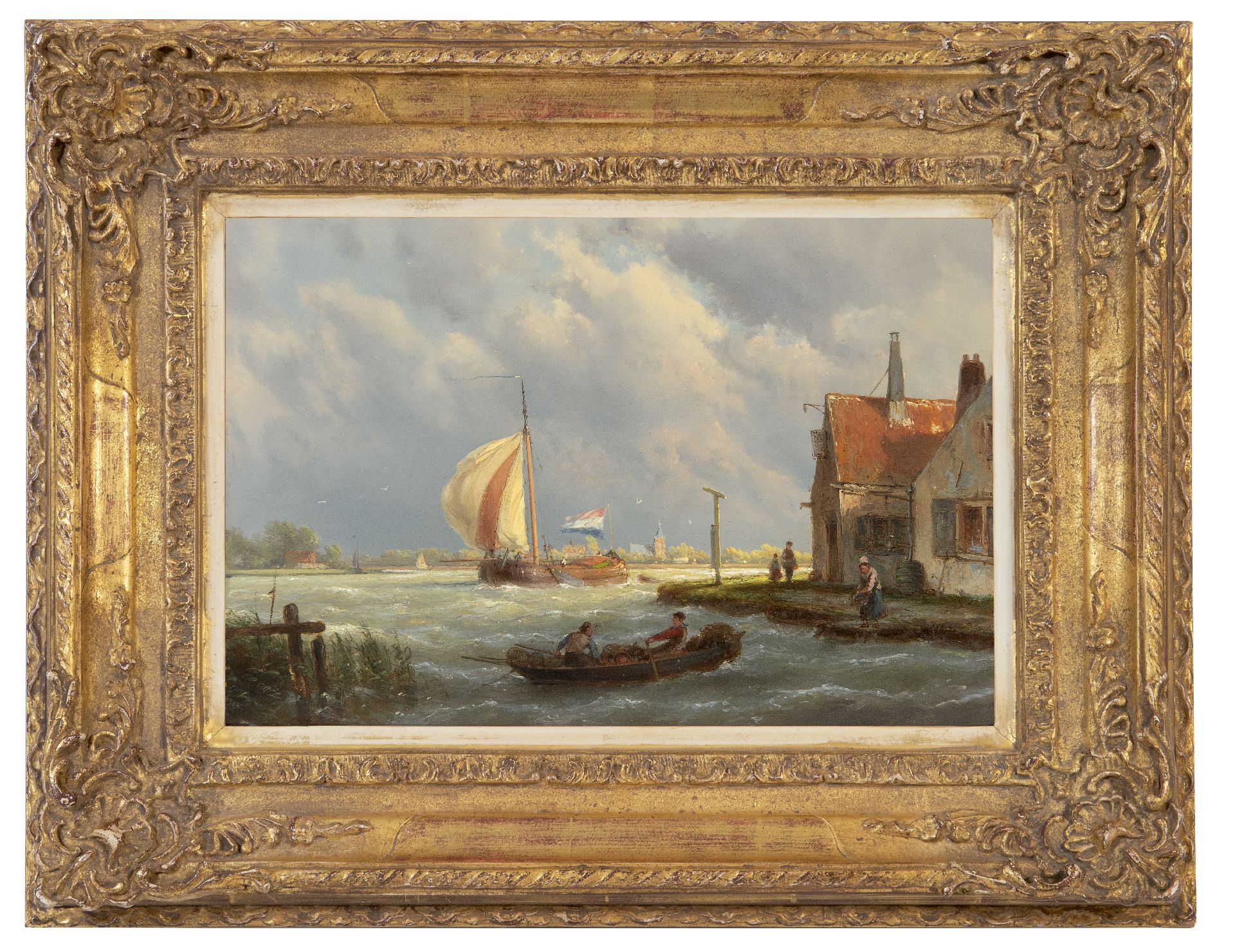 Hermanus Koekkoek kunstwerk • schilderij • voorheen te koop Langs een dorpje zeilende tjalk in een stevige bries