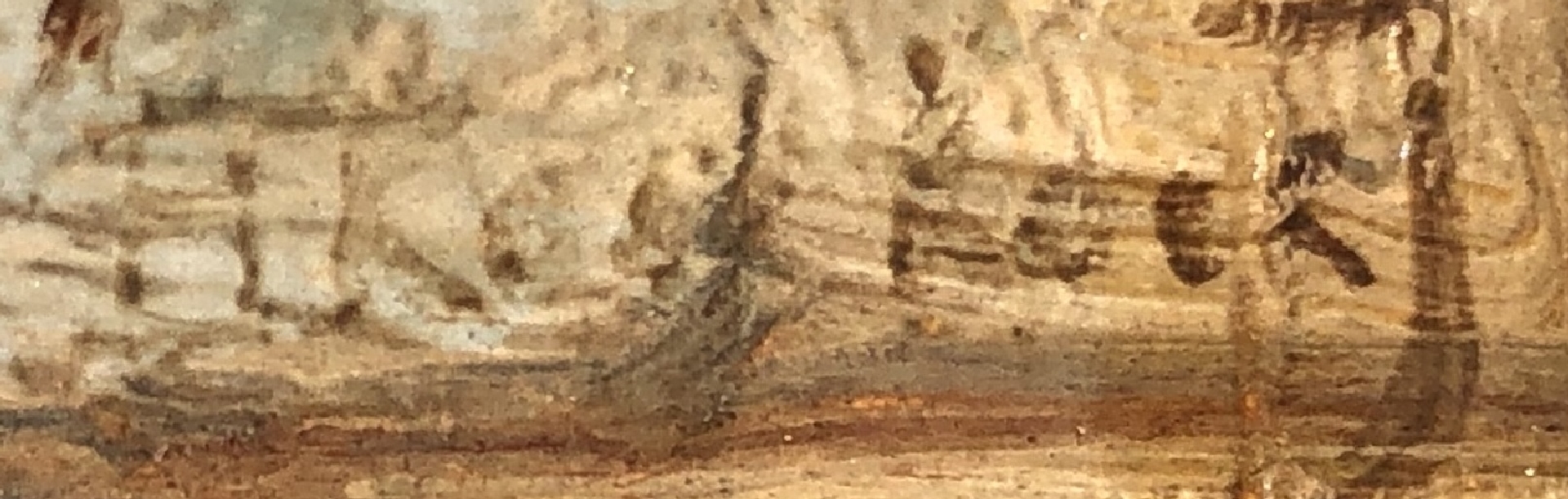 olieverf op paneel 22,1 x 32,0 cm, gesigneerd rechts van het midden op huisje