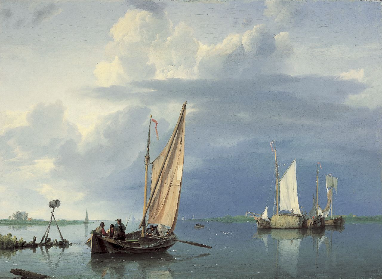 Hermanus Koekkoek kunstwerk • schilderij • voorheen te koop Riviergezicht met hooischip
