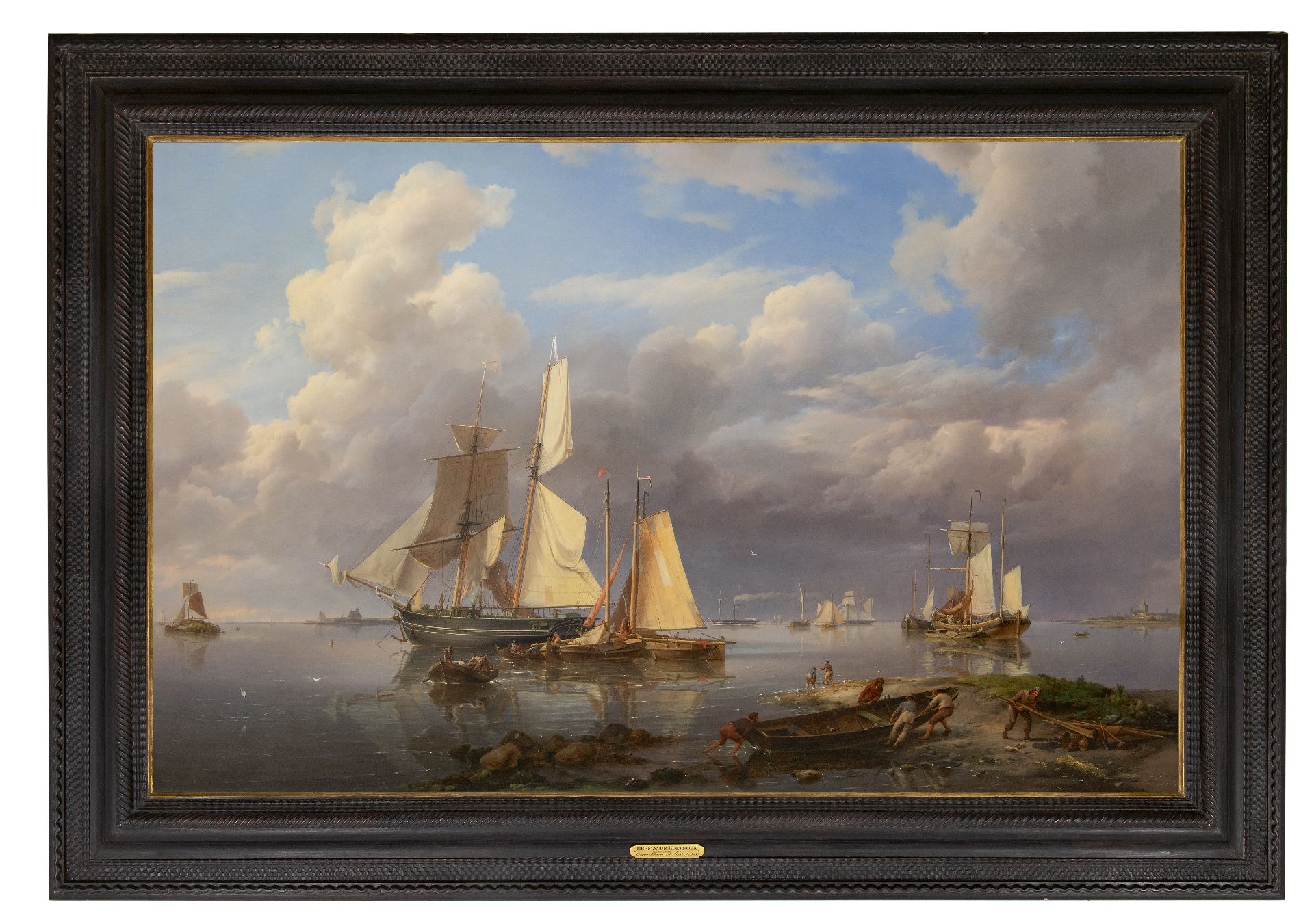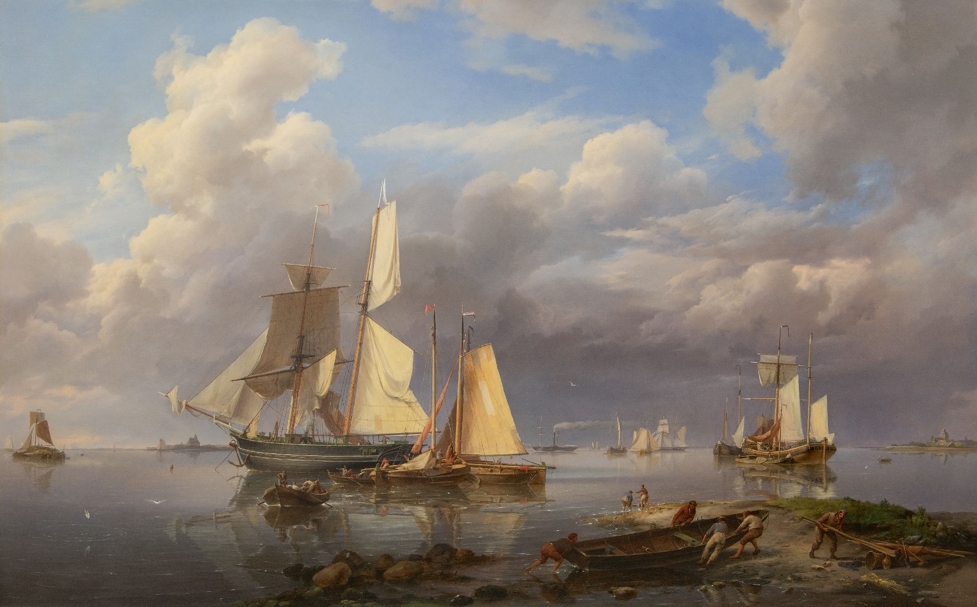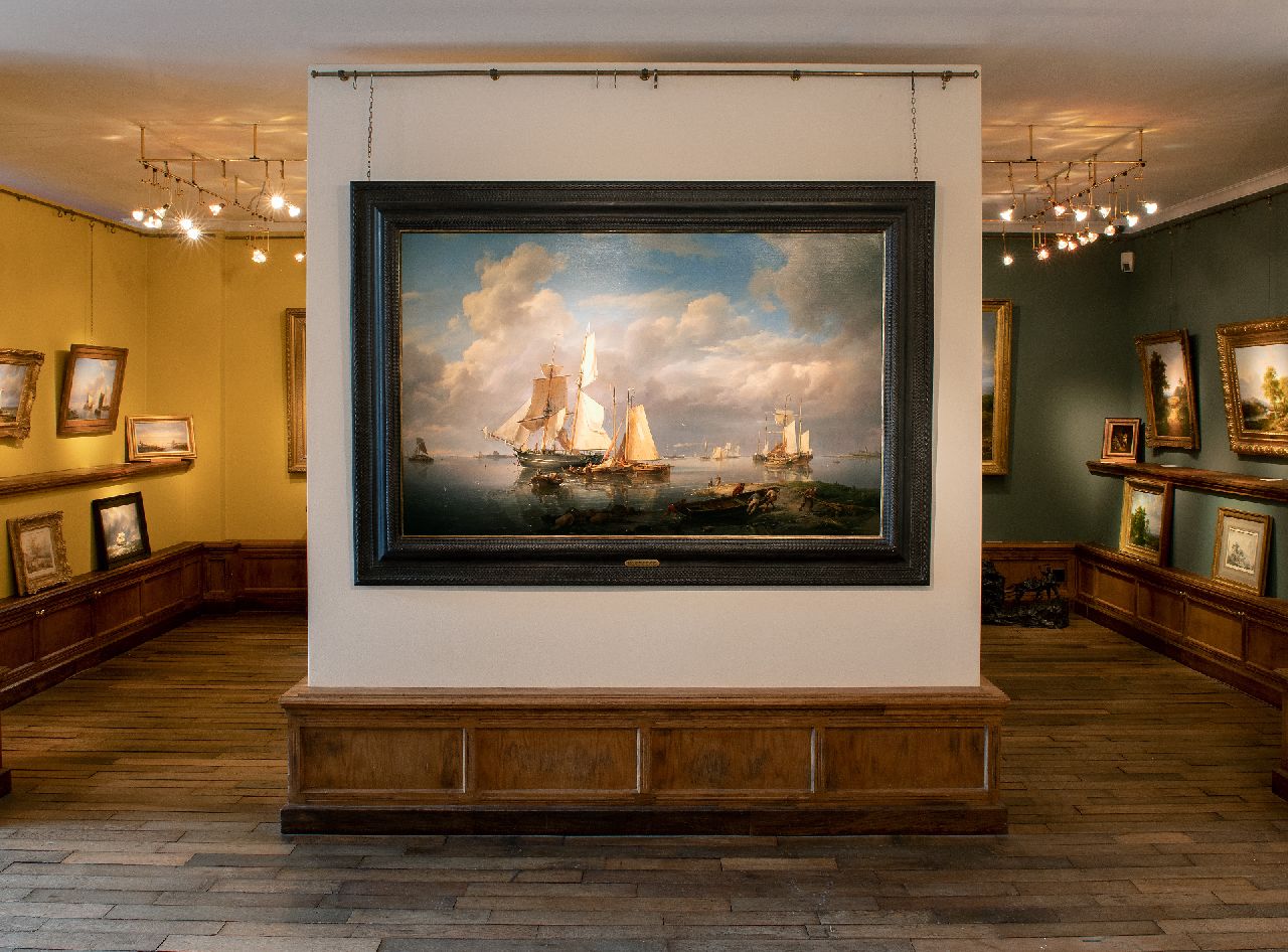 Hermanus Koekkoek kunstwerk • schilderij • voorheen te koop Schepen voor anker voor de kust, bij kalm weer