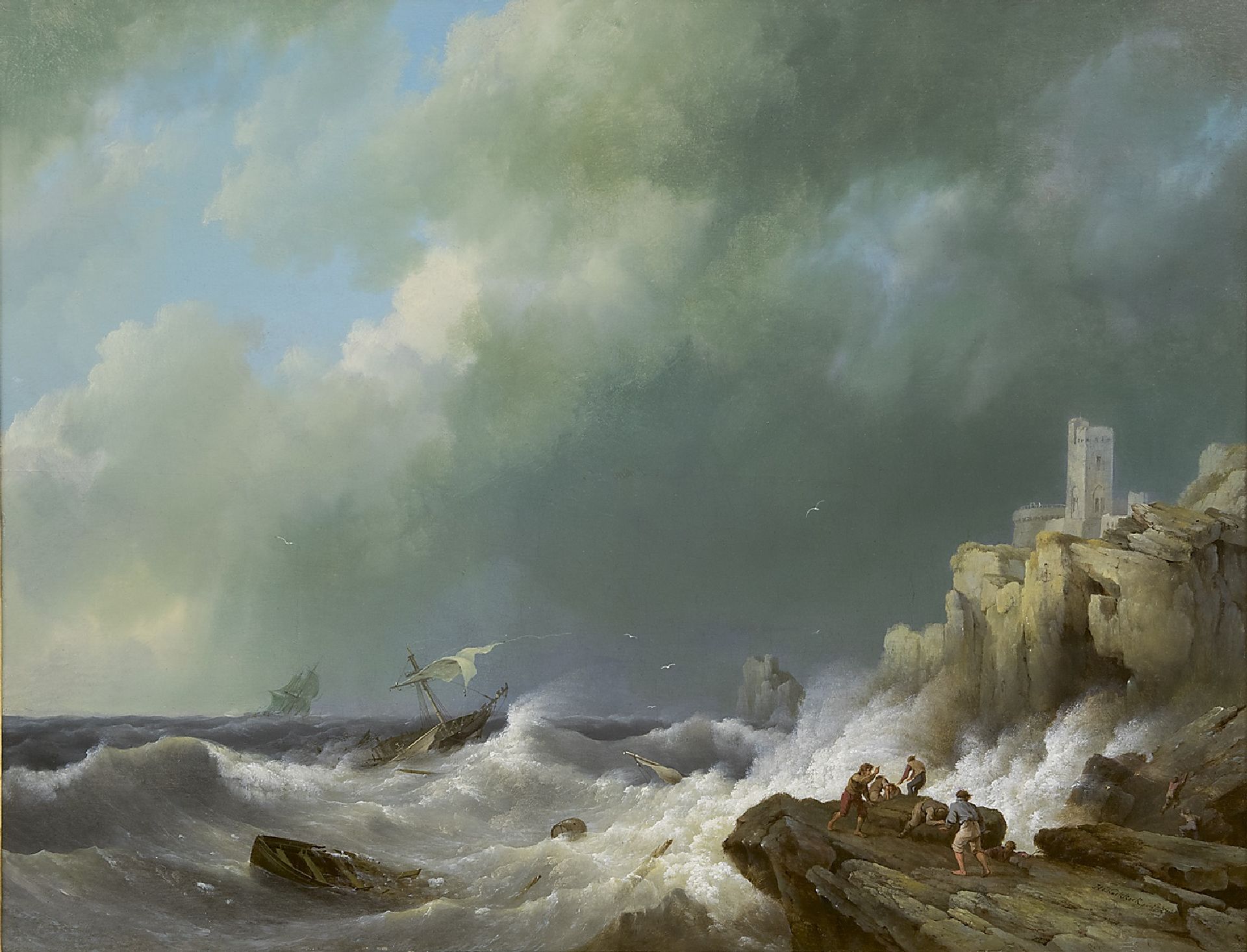 Hermanus Koekkoek kunstwerk • schilderij • te koop Schipbreuk voor een rotskust