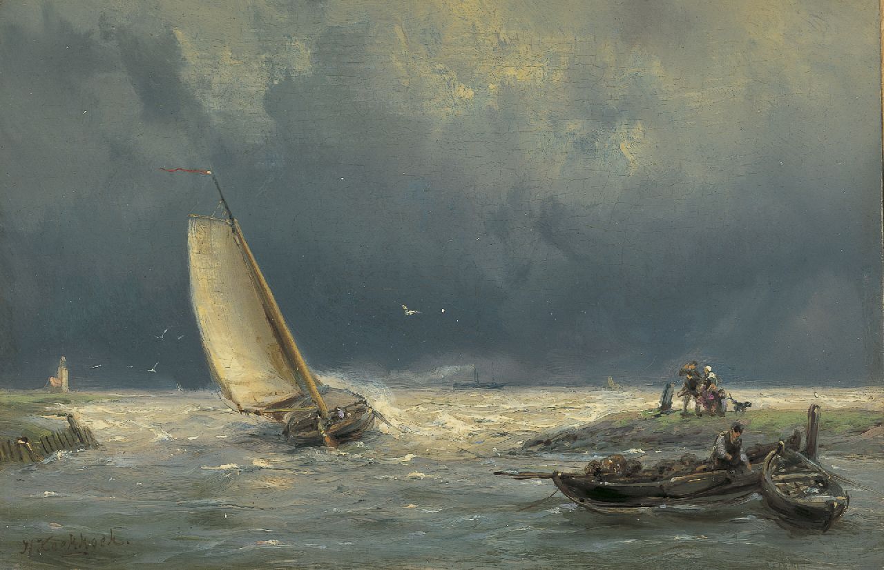 Hermanus Koekkoek kunstwerk • schilderij • voorheen te koop Uitvarende botter op woelige zee