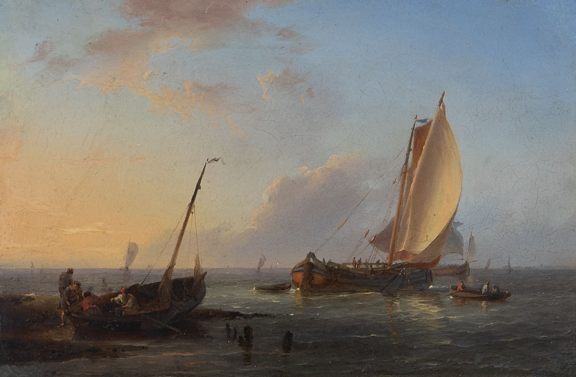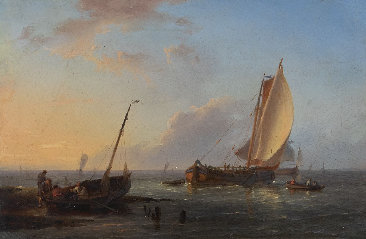Hermanus Koekkoek kunstwerk • schilderij • te koop Vissers en zeilschepen voor de kust