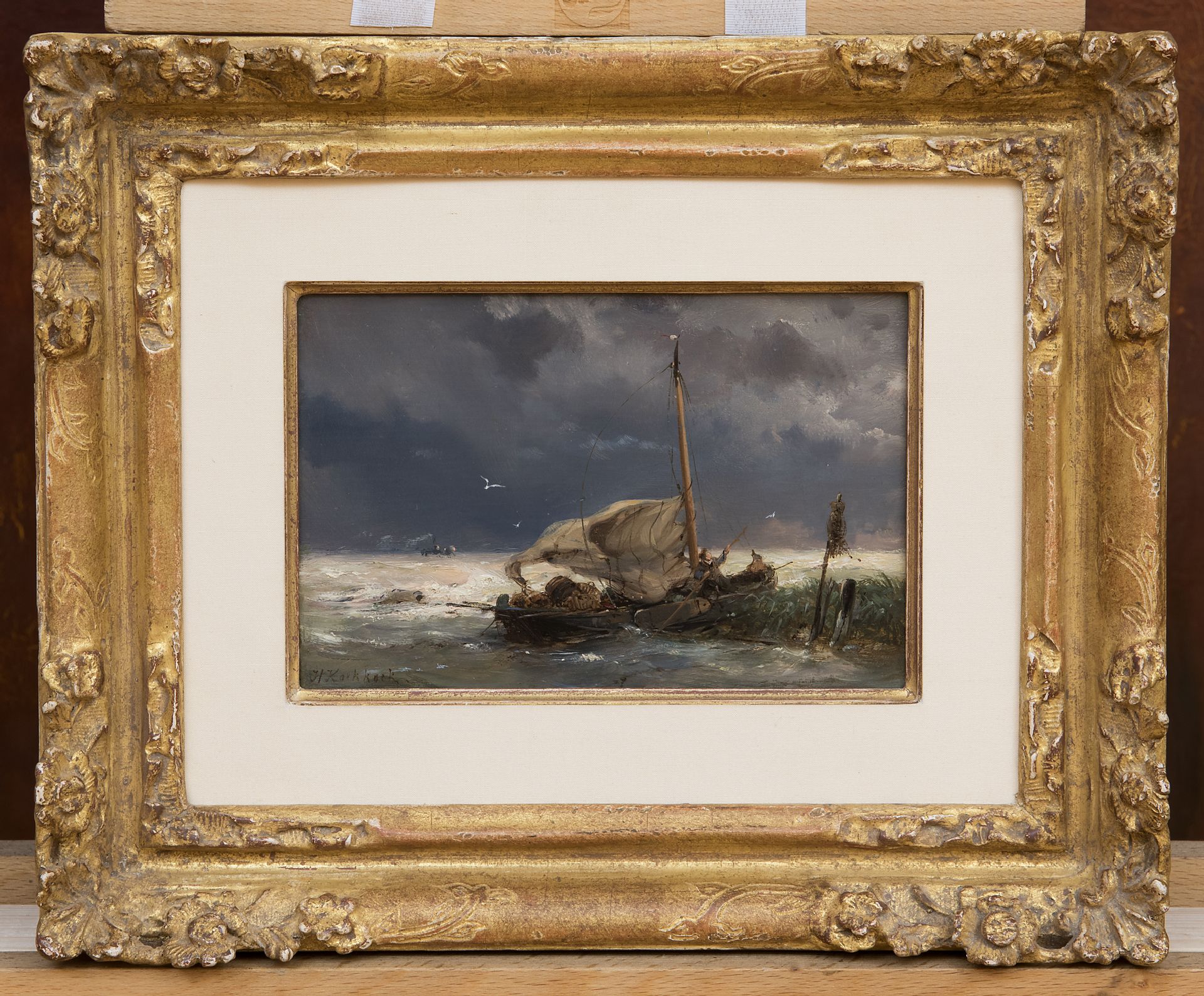 Hermanus Koekkoek kunstwerk • schilderij • voorheen te koop Vissersboot en stoomschip in zwaar weer