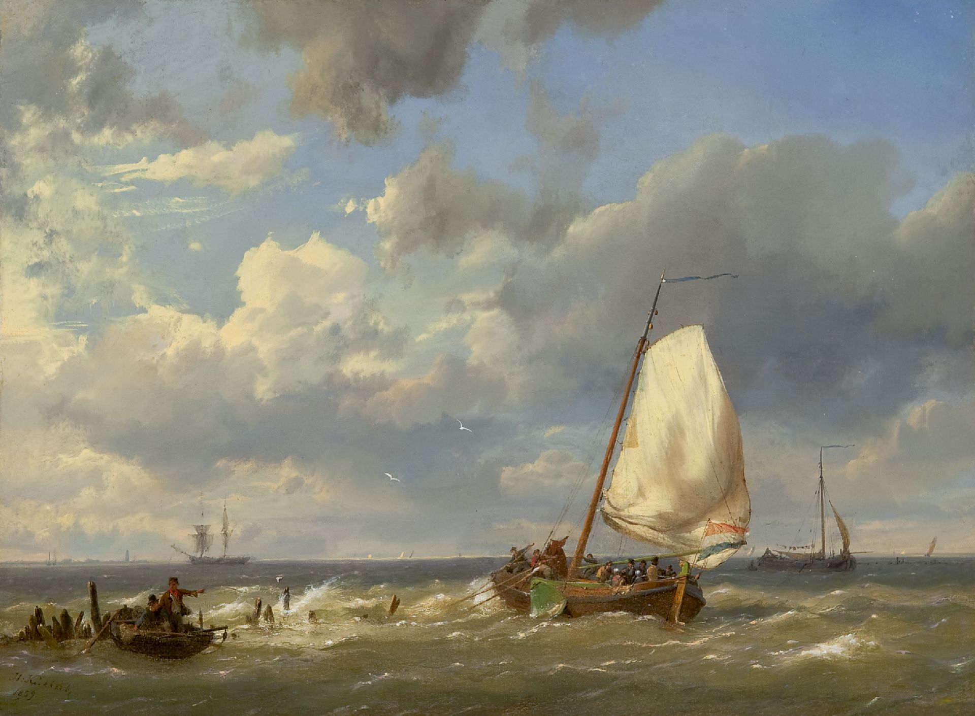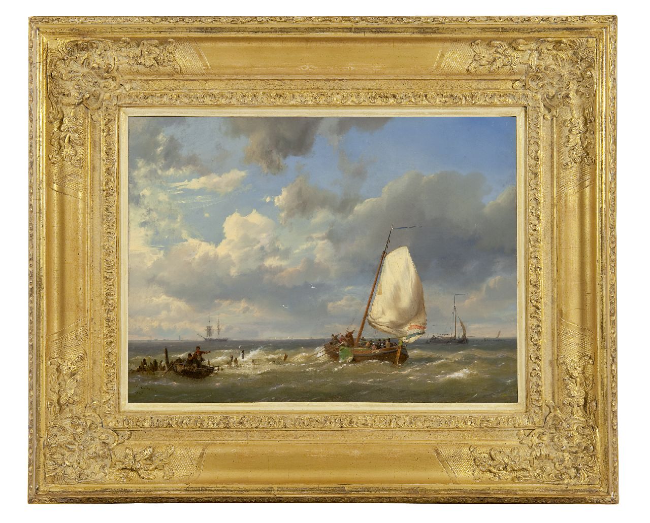 Hermanus Koekkoek kunstwerk • schilderij • voorheen te koop Vissersboten voor de kust