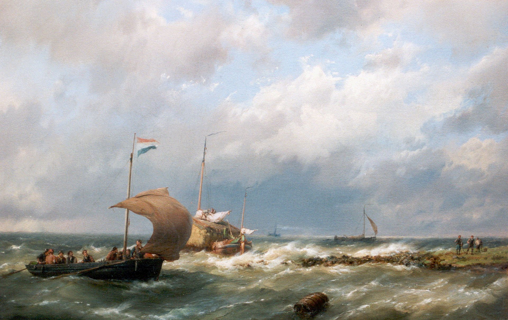 Hermanus Koekkoek kunstwerk • schilderij • voorheen te koop Vrachtschip en veerdienst op woelig water