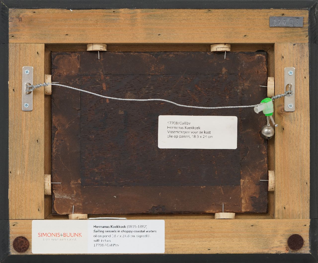 Hermanus Koekkoek was de jongste zoon en leerling van marineschilder Johannes Hermanus Koekkoek, de stamvader van het schildersgeslacht Koekkoek. Hij werd geboren in Middelburg. Toen hij elf jaar was verhuisde de familie naar het schilderachtige havenplaatsje Durgerdam aan de Zuiderzee. Een paar jaar later vertrokken zij naar Amsterdam. Daar was Hermanus gedurende vijftig jaar een zeer succesvolle schilder van zee-, strand- en riviergezichten. Invloed van zijn vader is aanwijsbaar in de gedetailleerde weergave van de schepen en hun tuigage, de virtuoze tekening van het water en de levendige, verhalende stoffering. Behalve aan zijn zonen gaf Hermanus Koekkoek ook les aan de marineschilder Willem Gruijter jr.