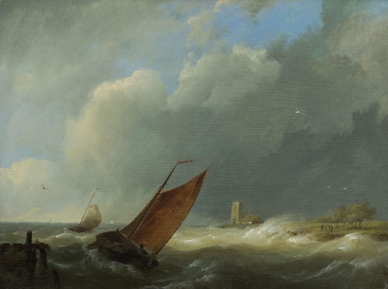 Hermanus Koekkoek kunstwerk • schilderij • voorheen te koop Zeilschepen bij stormachtig weer