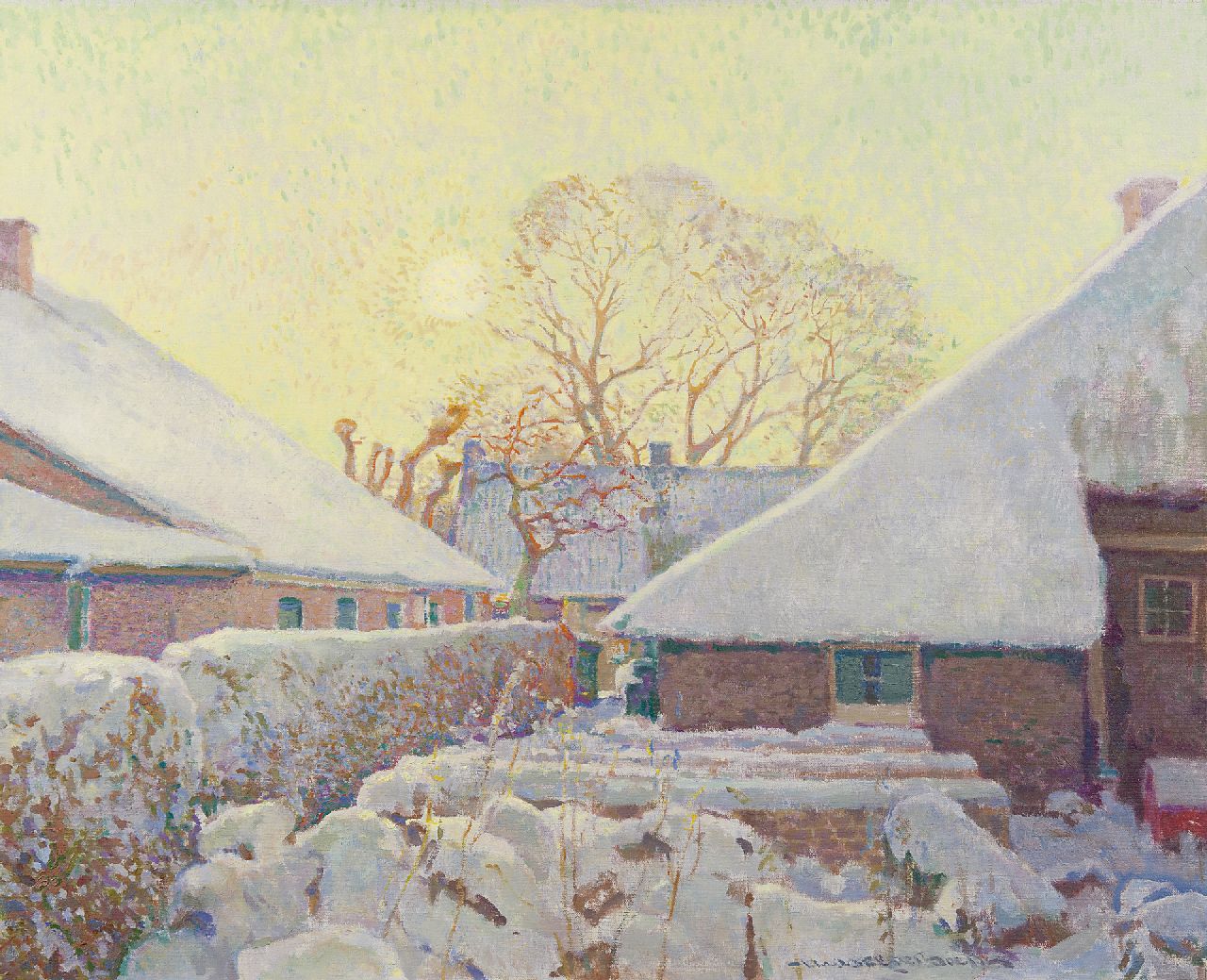 Hessel de Boer kunstwerk • schilderij • voorheen te koop Besneeuwde boerderijen in Blaricum