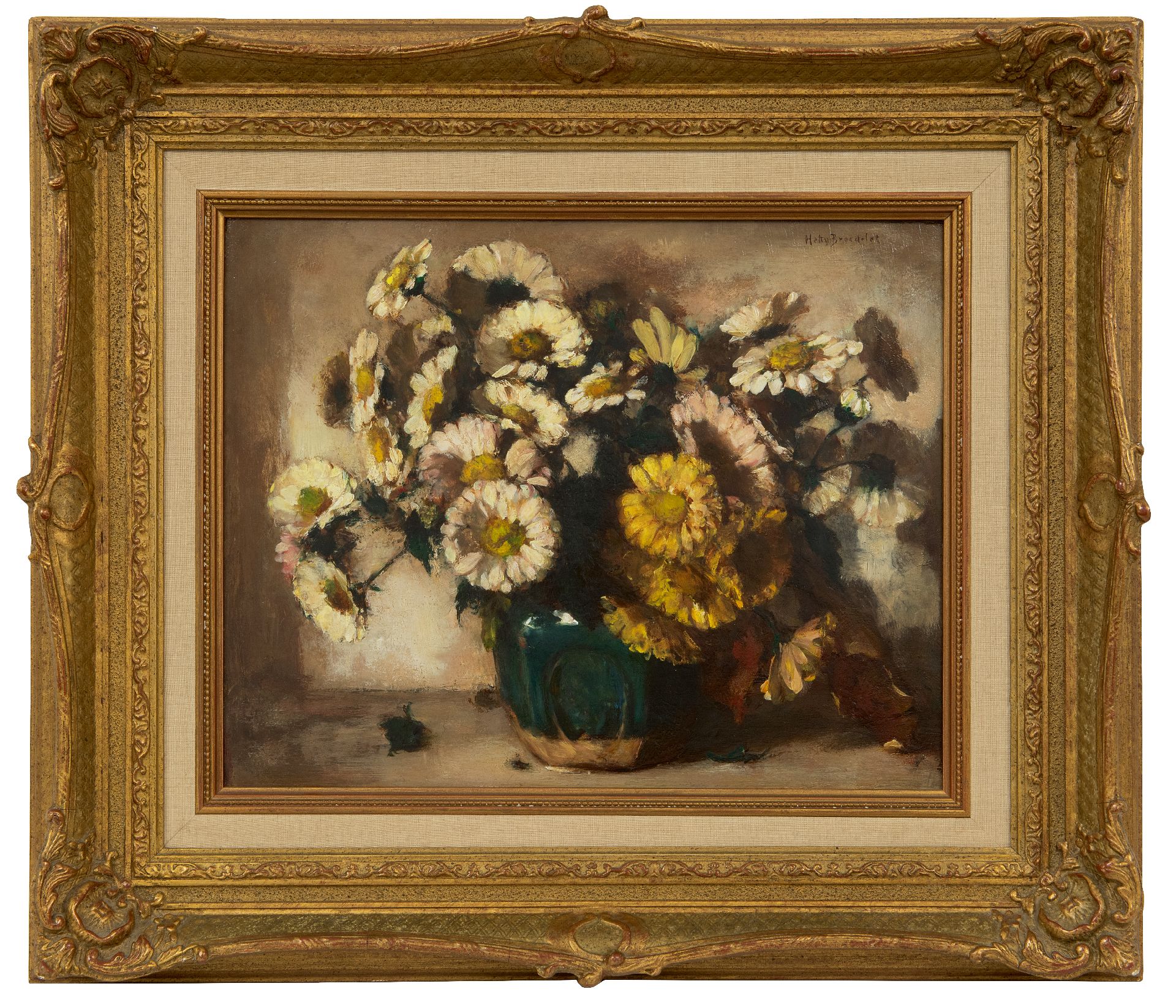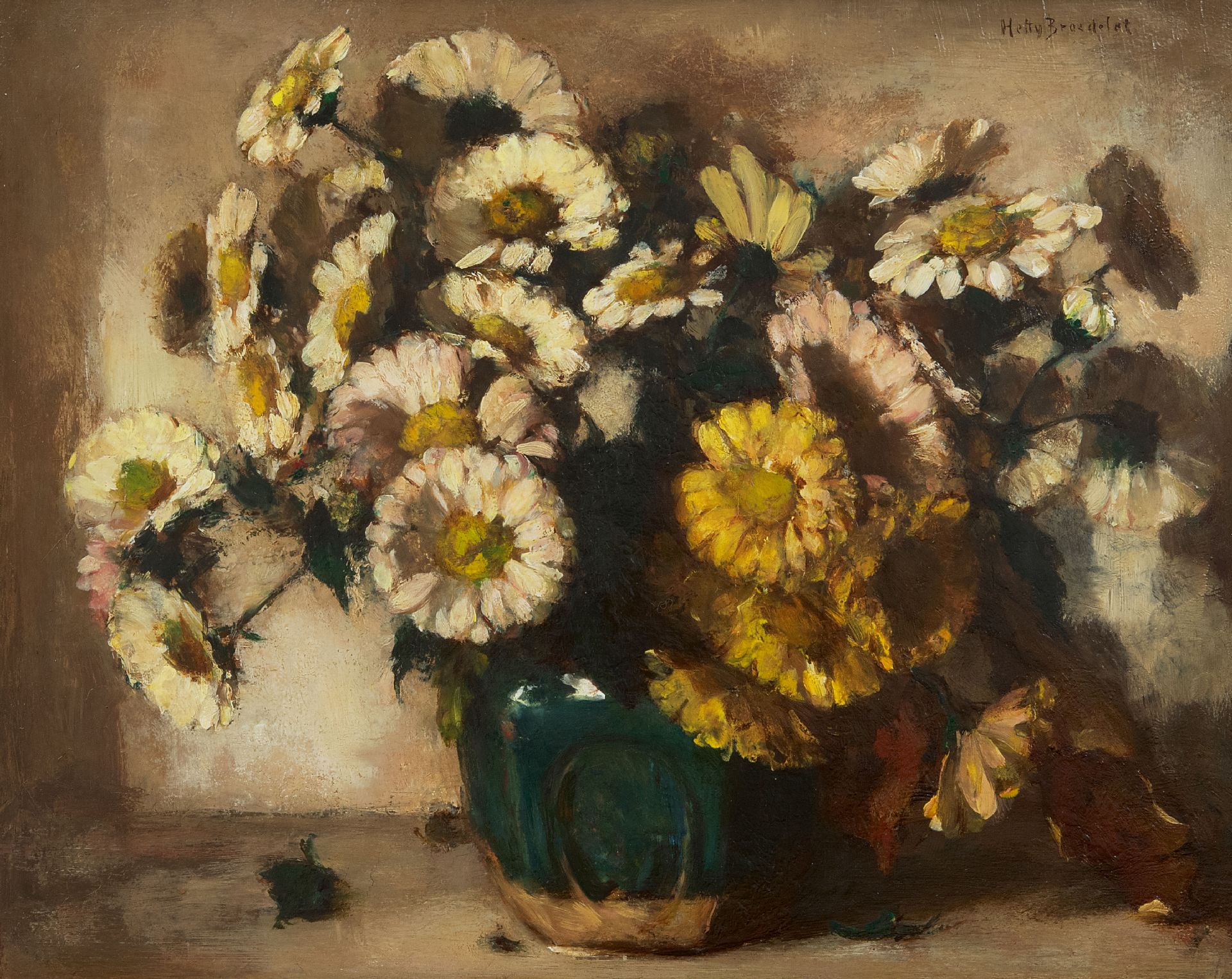 Hetty Broedelet-Henkes kunstwerk • schilderij • voorheen te koop Margrieten in een gemberpot