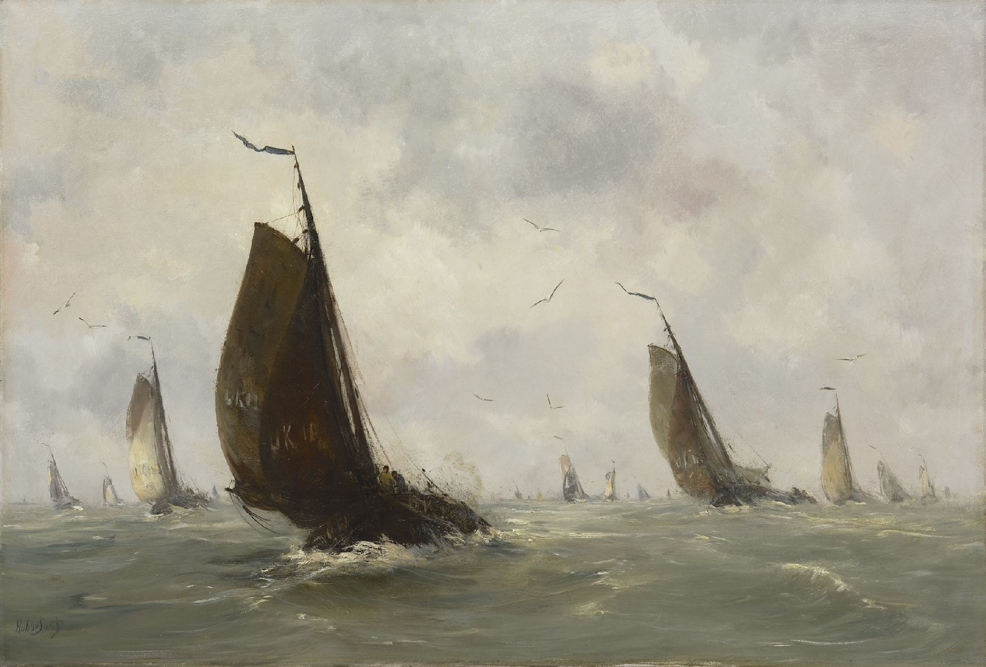 Hobbe Smith kunstwerk • schilderij • voorheen te koop Uitvarende Urker botters