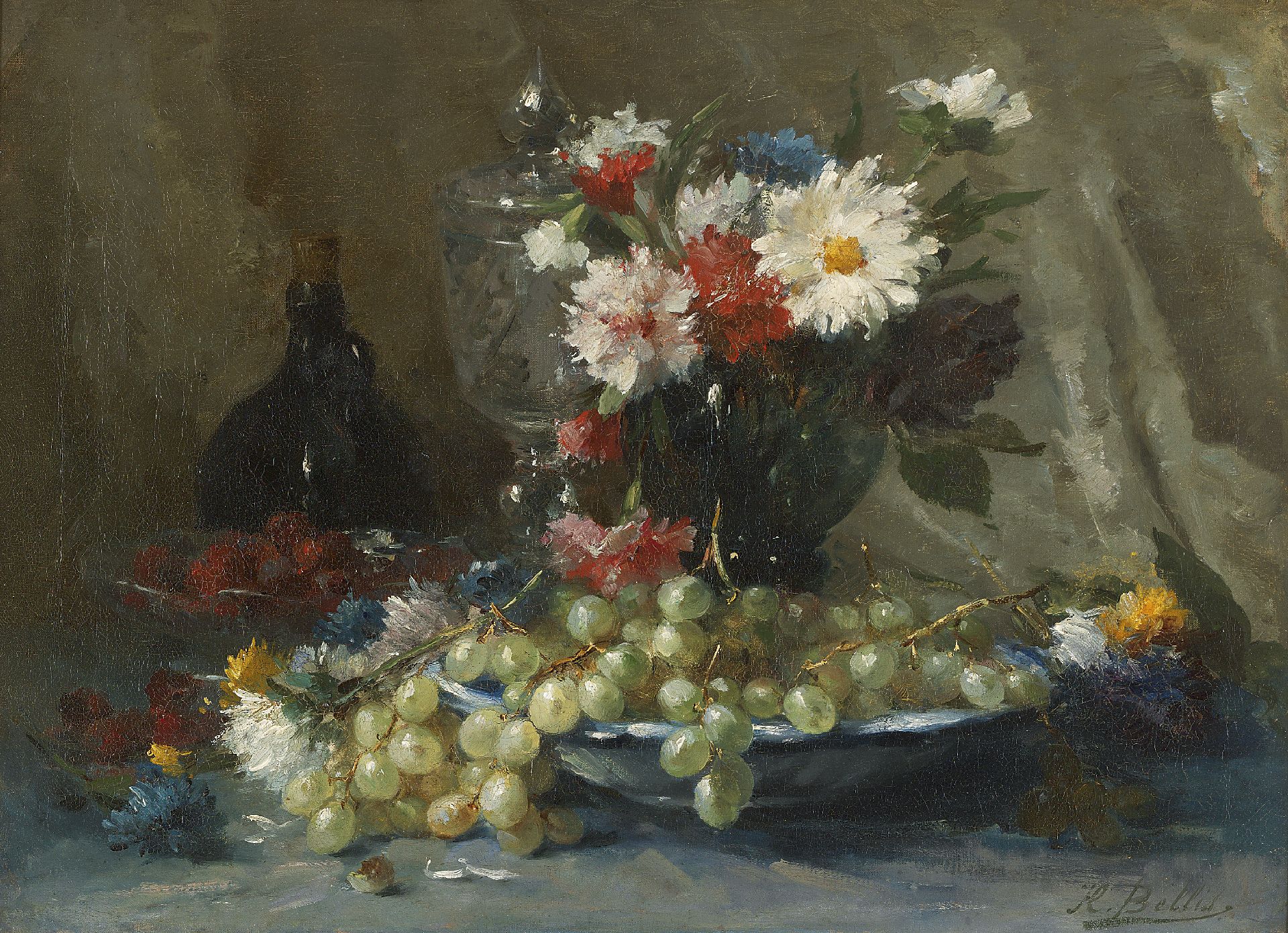 Hubert Bellis kunstwerk • schilderij • voorheen te koop Stilleven met bloemen en fruit
