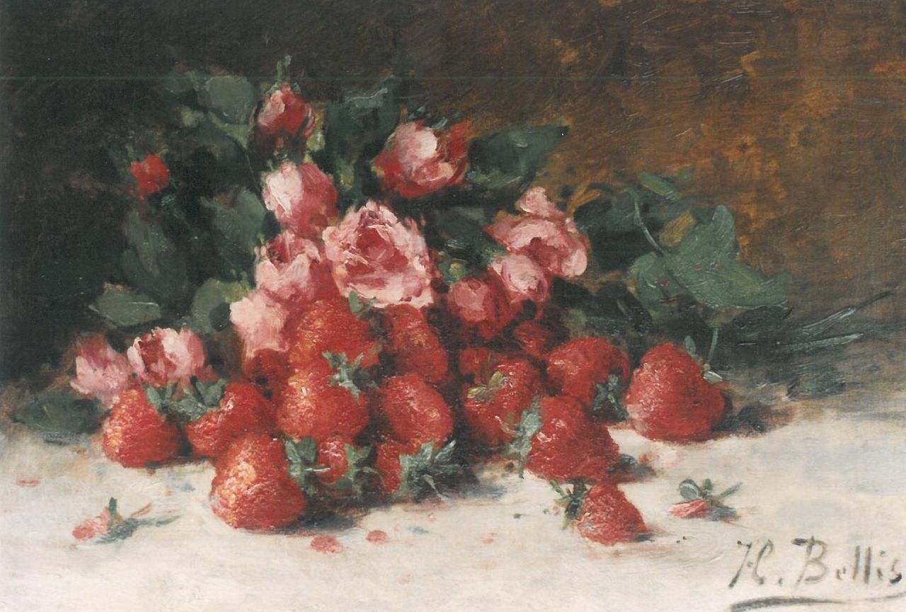 Hubert Bellis kunstwerk • schilderij • voorheen te koop Stilleven van rozen en aardbeien
