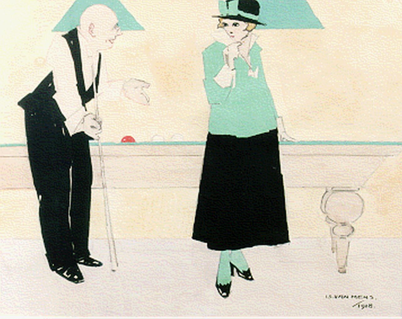 Is Mens kunstwerk • aquarel • tekening • voorheen te koop Een uitnodiging bij het biljart