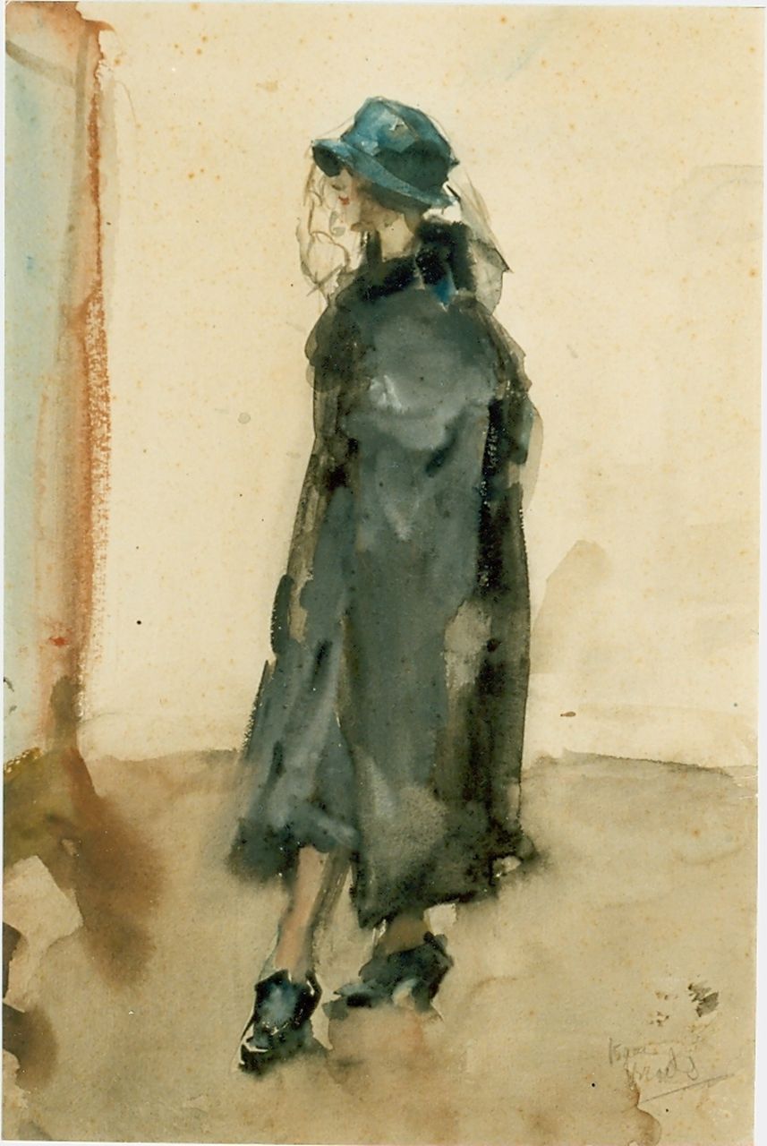 Isaac Israels kunstwerk • aquarel • tekening • voorheen te koop Elegante vrouw voor passpiegel