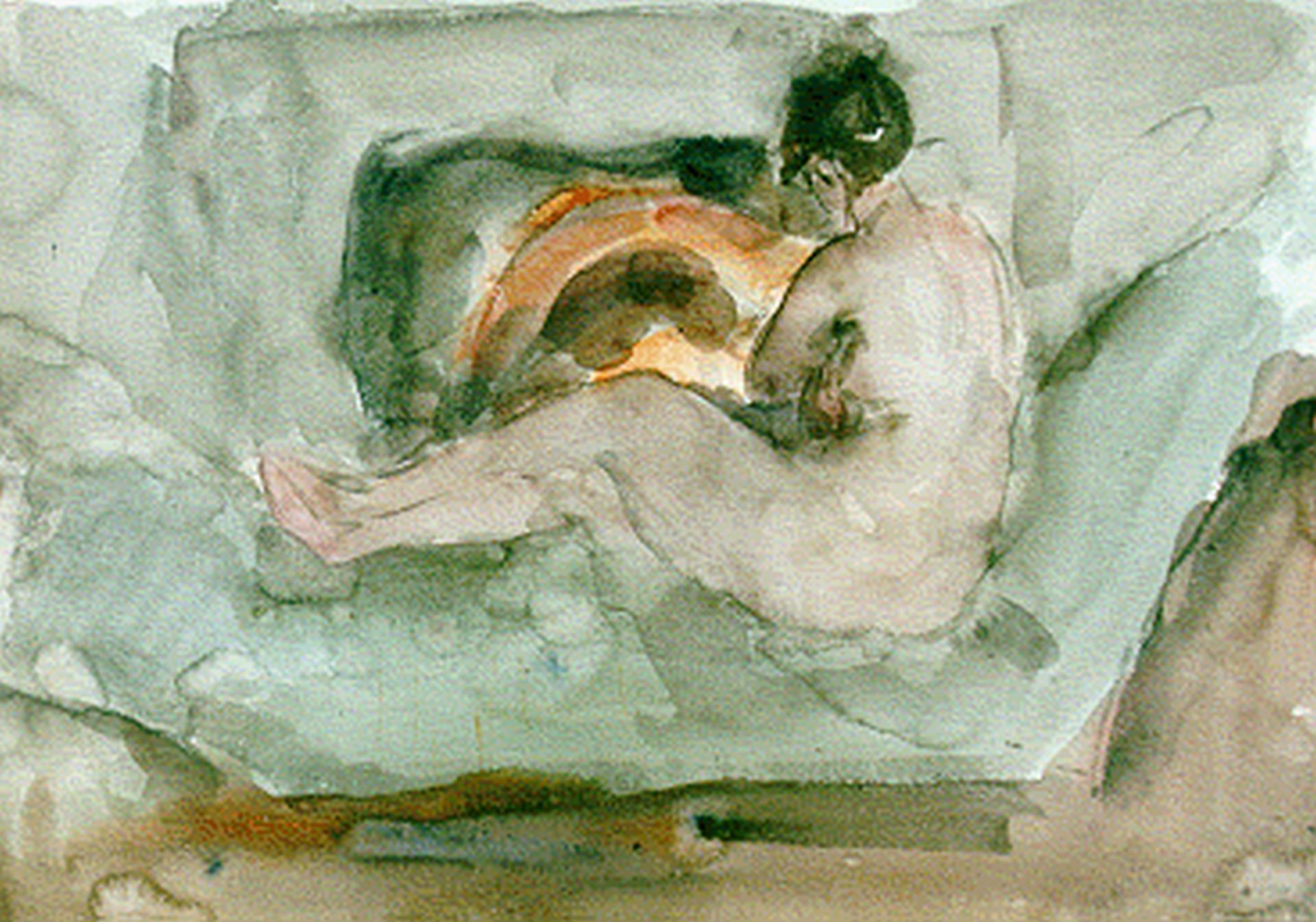 Isaac Israels kunstwerk • aquarel • tekening • voorheen te koop Naakt op divan voor de haard